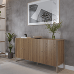 O Balcão Voss transforma qualquer ambiente com seu design neo industrial, marcado por linhas retas e modernas. Com 4 portas equipadas com puxadores em zamac, ele oferece amplo espaço de armazenamento e se destaca por sua praticidade. Os pés cleans de metal com sapatas reguláveis proporcionam durabilidade e estabilidade, sendo uma escolha ideal para diversos espaços como home office, escritórios, salas de estudo ou até ambientes comerciais.