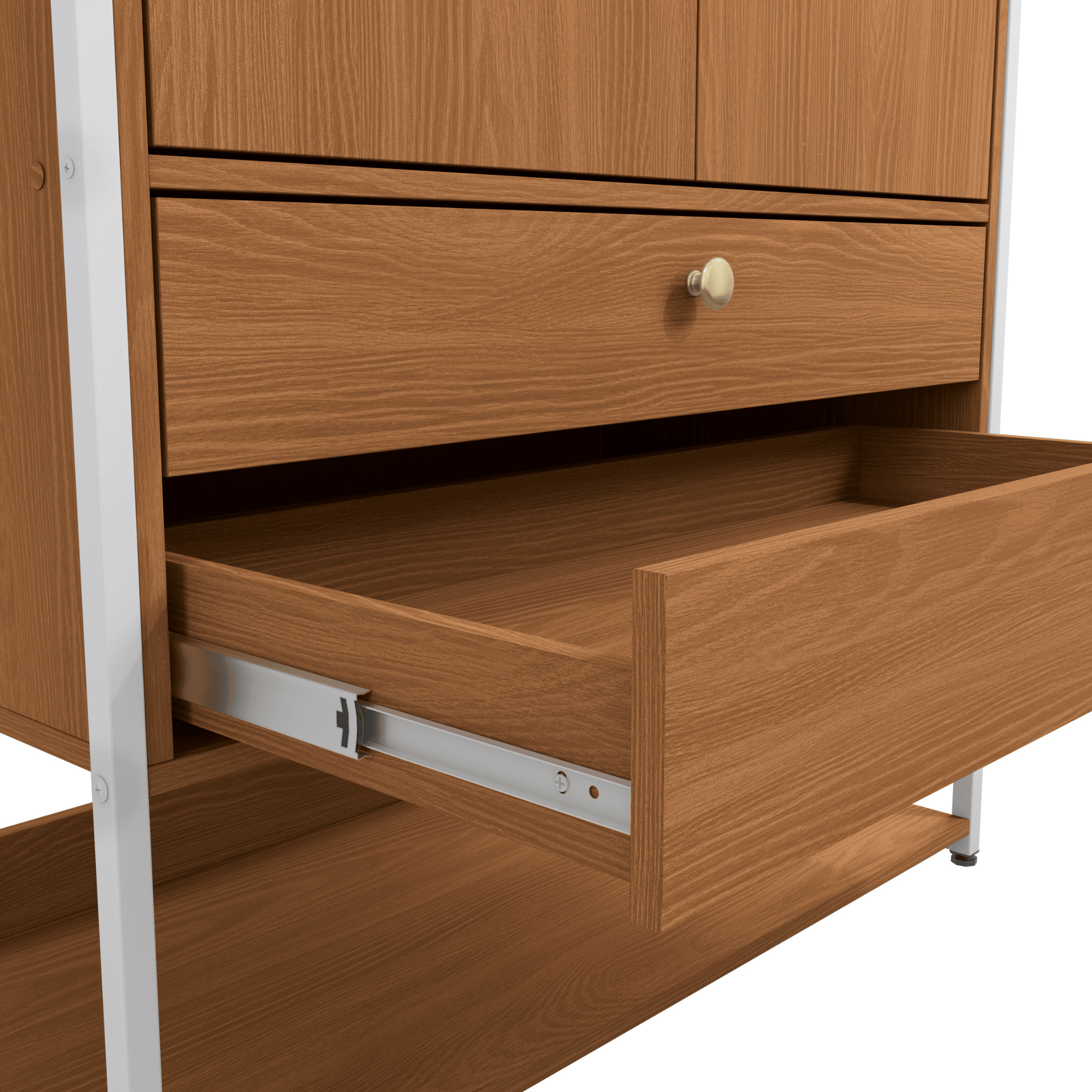 - Corrediças telescópicas: abertura suave e silenciosa nas gavetas, com capacidade para até 6 kg cada.