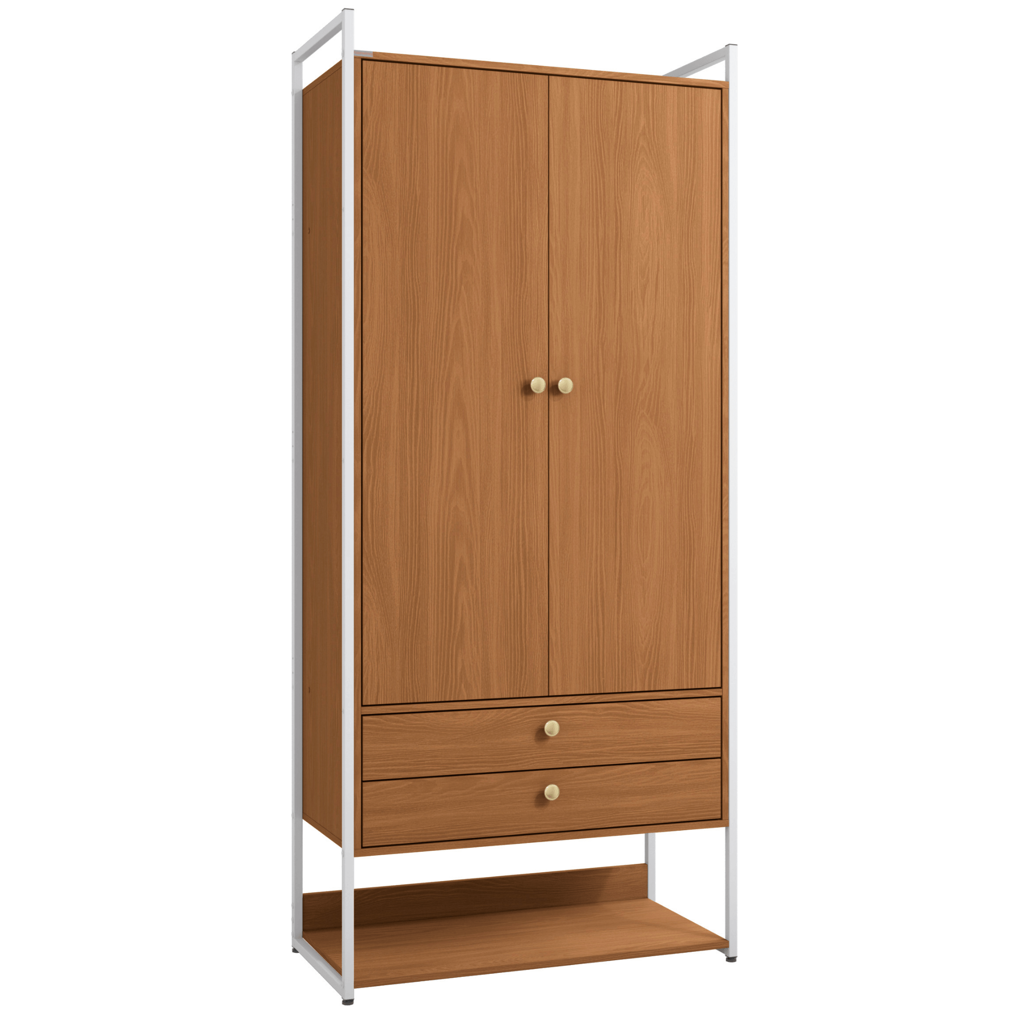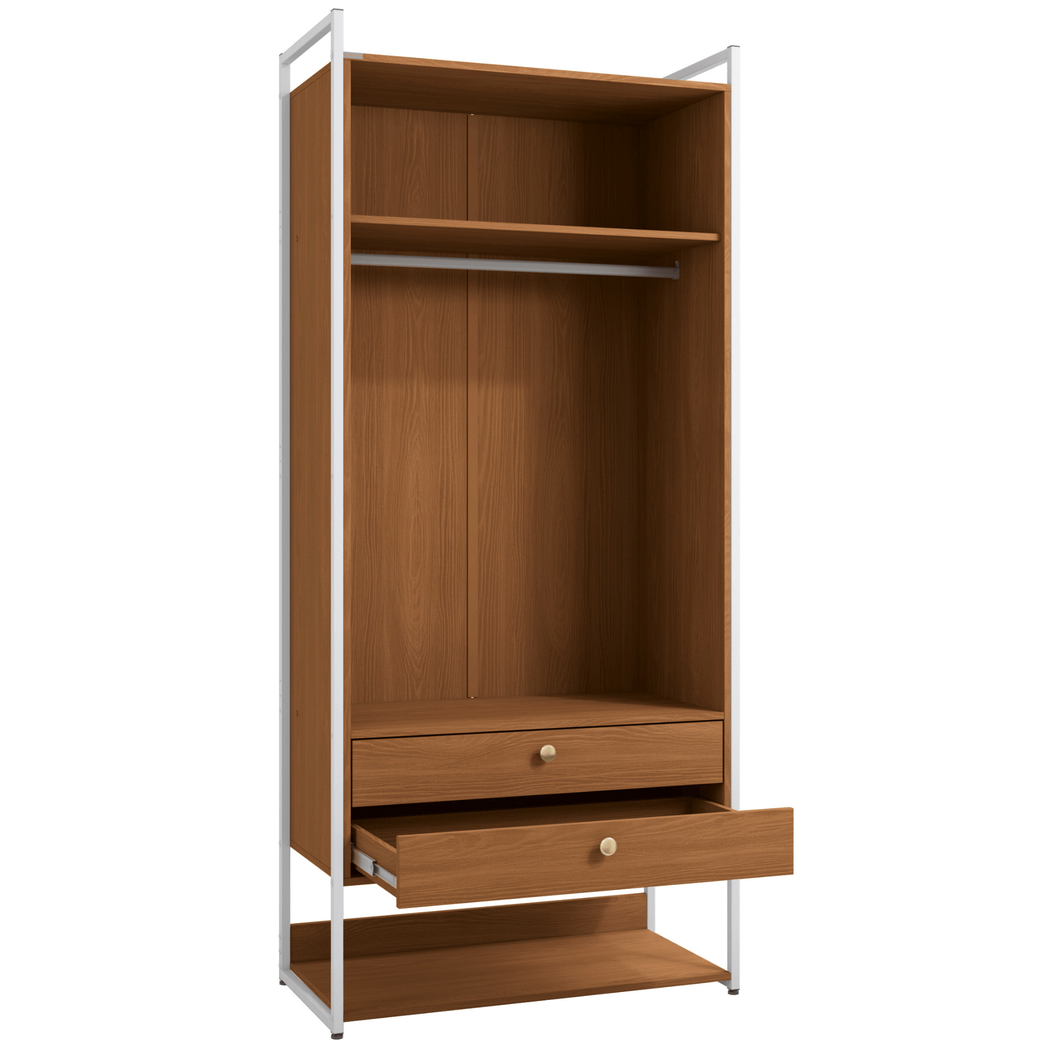 - Prateleiras amplas: 4 prateleiras com suporte de até 7 kg por unidade, ideais para roupas, caixas ou acessórios.