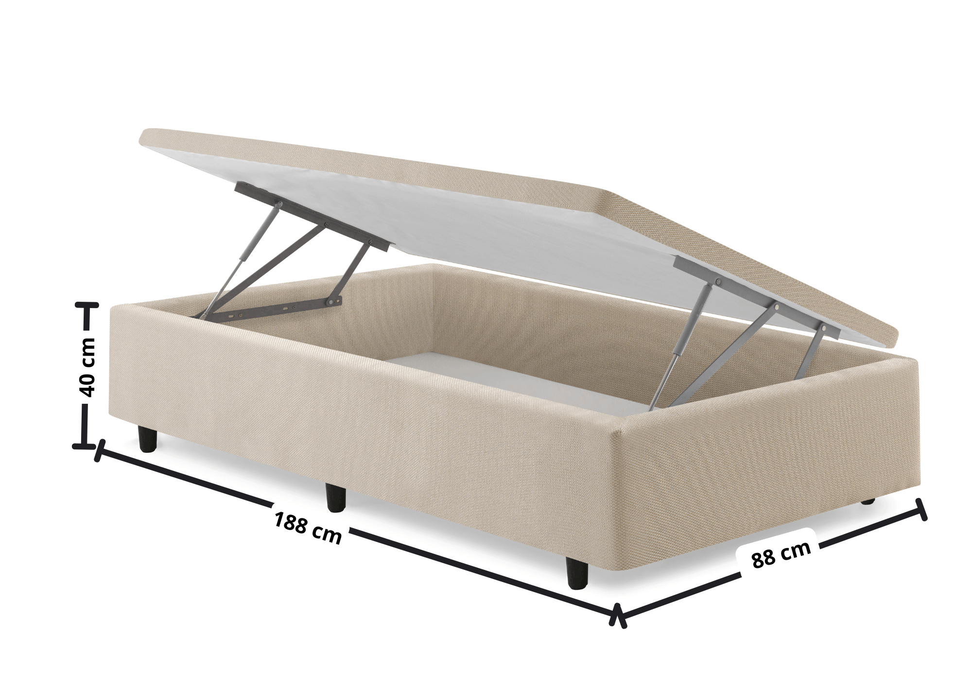 Suas dimensões de 88x188x40cm são perfeitas para colchões de solteiro, proporcionando uma base sólida e estável para o colchão, enquanto o baú oferece um espaço extra sem comprometer a estética do ambiente. O sistema de abertura lateral facilita o acesso ao interior do baú, oferecendo praticidade no dia a dia.