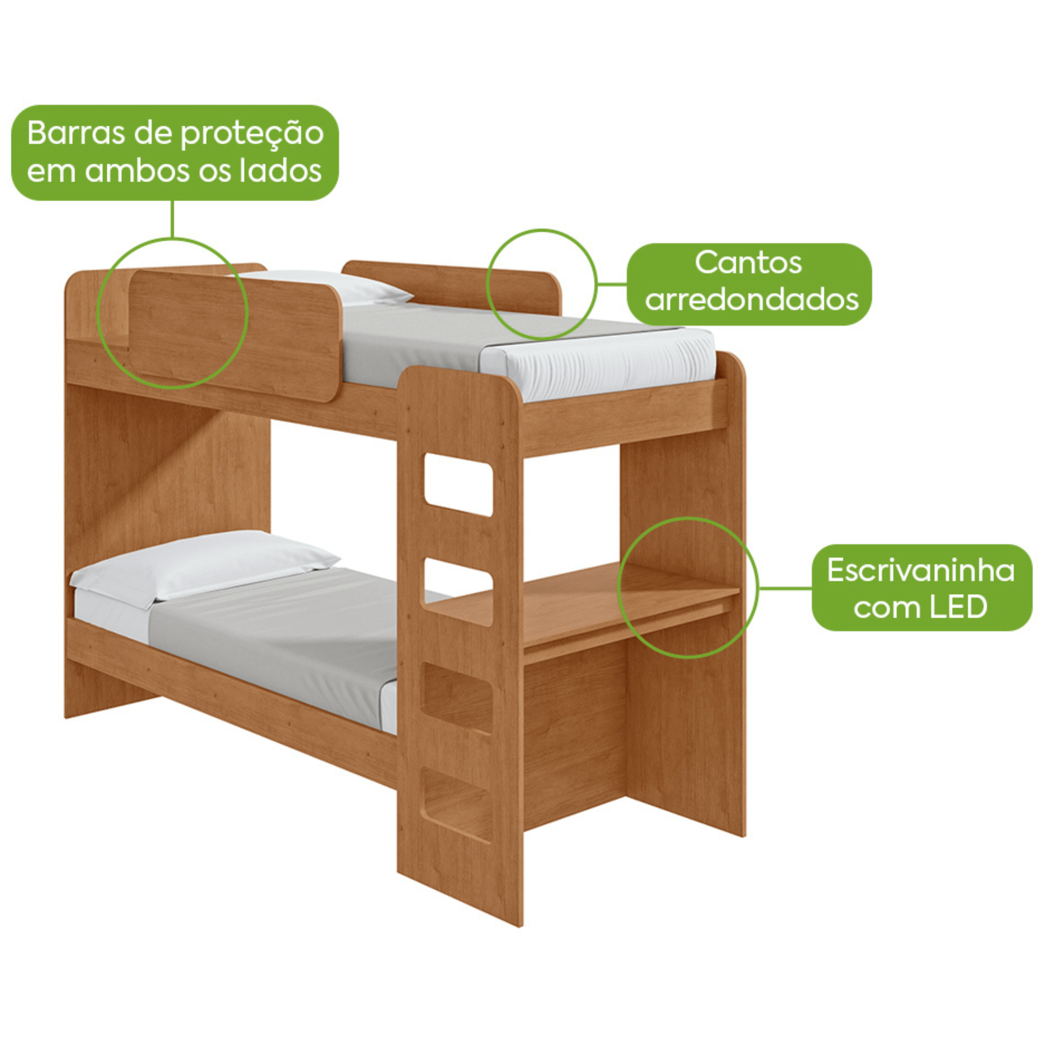 Transforme seu ambiente com a Beliche Solteiro Olga! Com um design seguro e cantos arredondados, ela oferece um toque moderno com LED integrado. Ideal para otimizar espaços sem abrir mão do conforto, é perfeita para quartos compactos e cheios de personalidade.