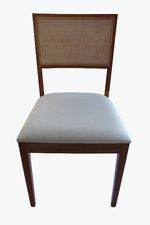 Cadeira Iris Artsoli Madeira Castanho Claro com Encosto Entrelaçado Linho Bege