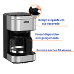 - Design e Material: A cafeteira possui um design elegante em aço escovado, que não apenas confere durabilidade, mas também um visual moderno e sofisticado para a sua cozinha. A jarra é feita de vidro resistente, permitindo que você veja o processo de preparação do café.