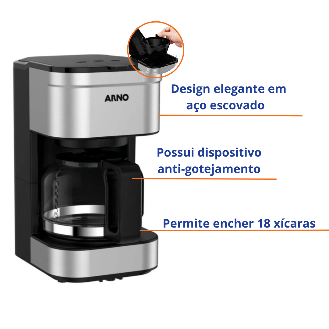 A Cafeteira Filtro Arno Preferita Inox é uma máquina de café clássica que combina estilo e funcionalidade.