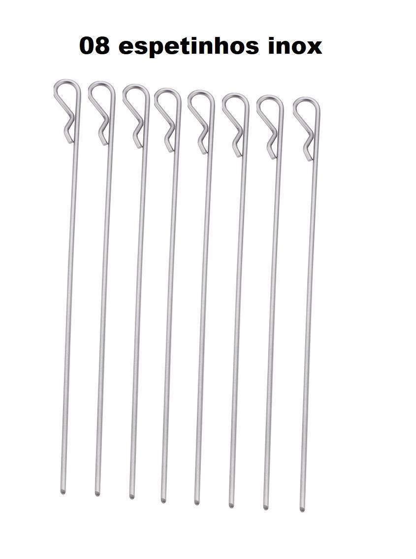 • - Possui 8 espetinhos em aço inox com sistema de encaixe.