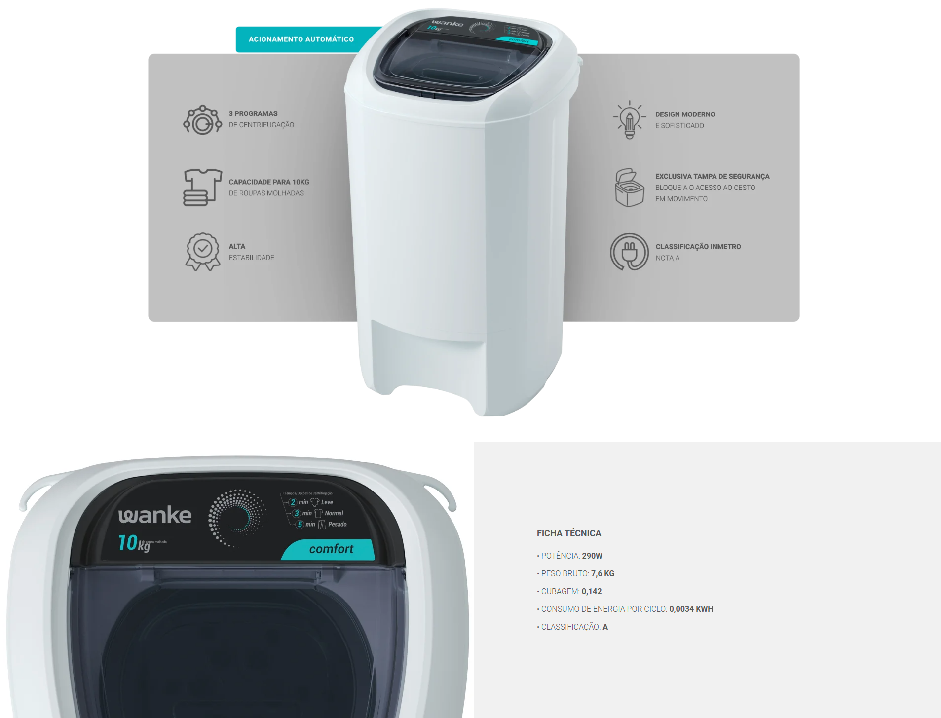 Centrífuga de Roupas Wanke Comfort 10kg – Eficiência e Cuidado com Suas Roupas