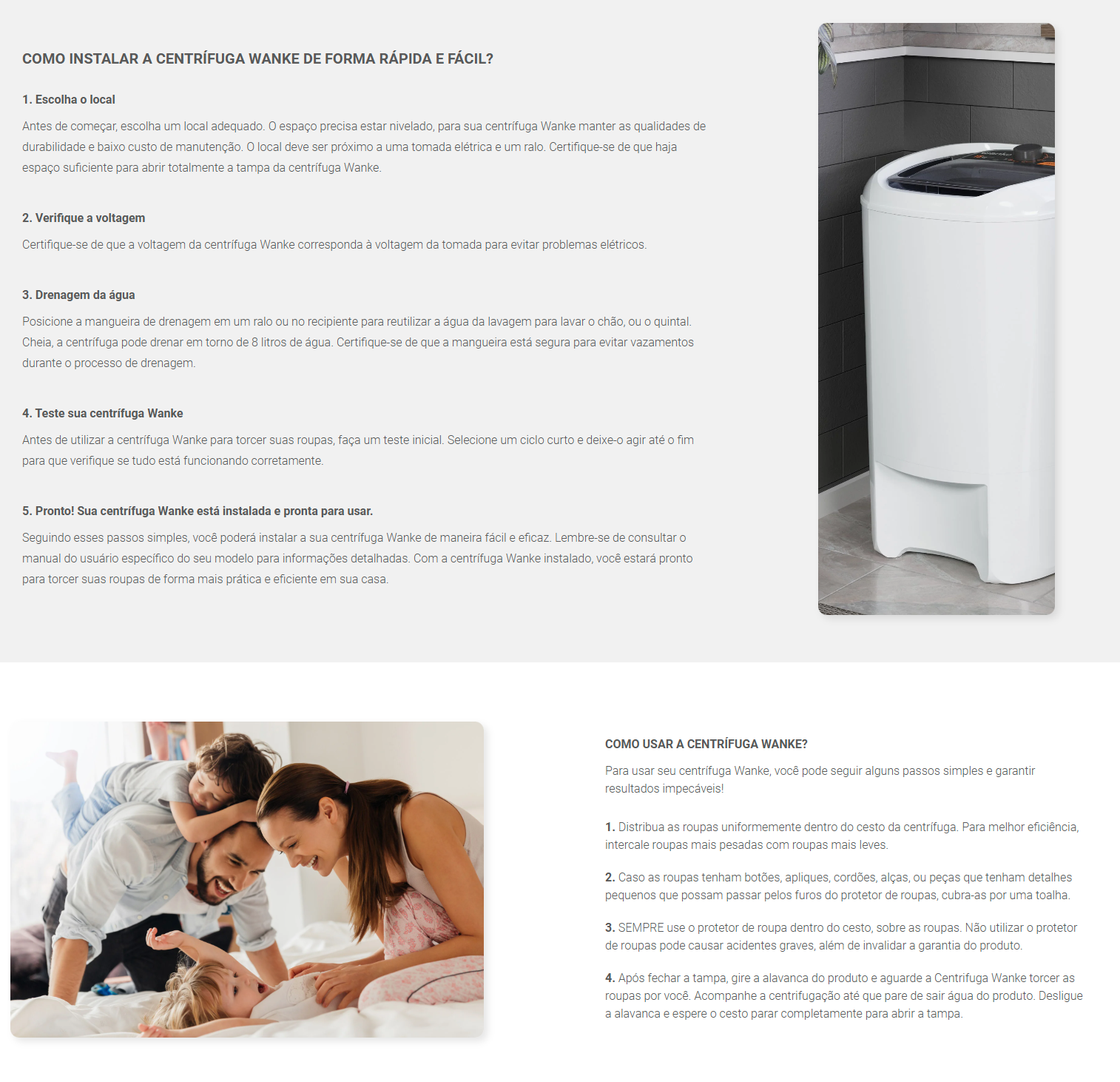 Seu design moderno e robusto foi pensado para quem busca durabilidade e alta performance. Seja para roupas pesadas de inverno, edredons ou o dia a dia da família, a Wanke Premium Plus garante um processo de centrifugação seguro e extremamente eficiente.