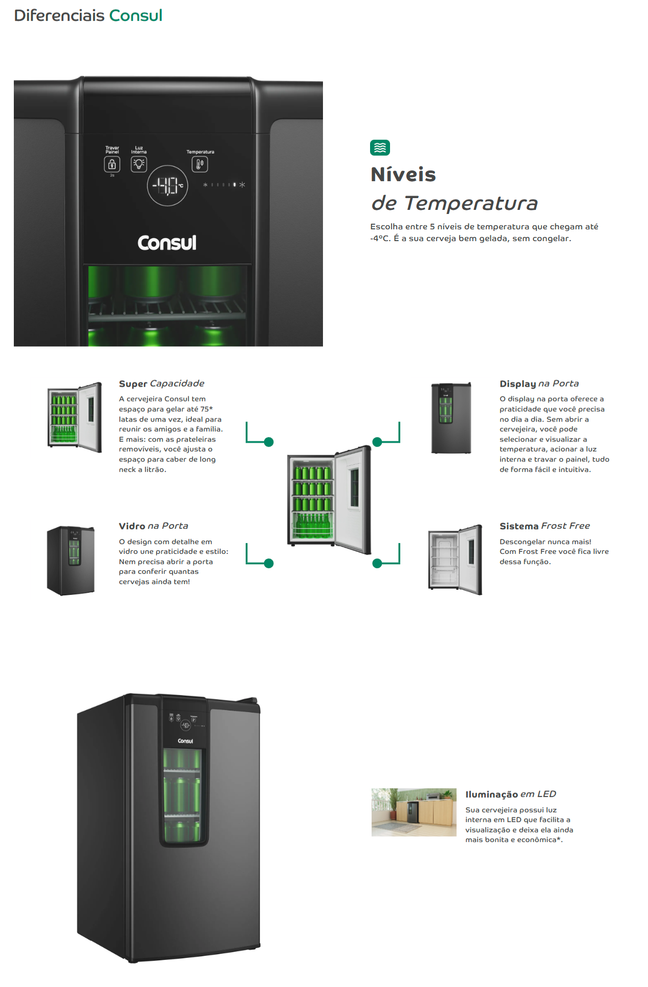 Cerveja gelada de verdade, sem o risco de congelar. A Cervejeira Consul Titanium (CZD12MT) é o desejo de consumo de quem não abre mão de momentos de lazer com a bebida na temperatura perfeita.