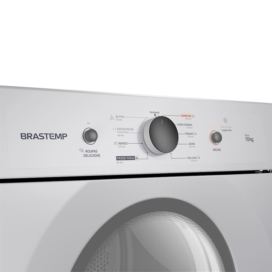 A Secadora Brastemp de Piso 10kg BSR10 oferece secagem rápida, eficiente e com muito mais cuidado. Com diferentes níveis de temperatura e programas automáticos, ela seca roupas de algodão, sintéticos e delicados sem danificar os tecidos. Ideal para quem deseja praticidade e roupas prontas em qualquer clima.