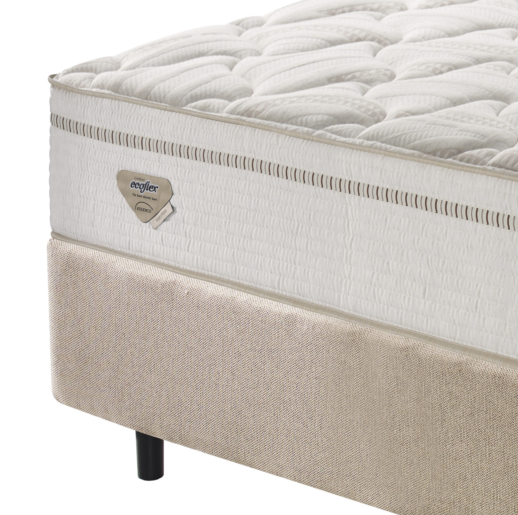 Buscando a satisfação de nossos consumidores, em adquirir um colchão com extrema qualidade, firmeza, visual, acabamento perfeito, mais alto. A Ecoflex transporta para a sua coleção o colchão High Spring Linen, desenvolvido no sistema de molas superlastic, que agrada a todos os consumidores por ser um molejo resistente, firme e adaptável a casais com biotipos diferenciados. Um colchão com 33 cm de altura, com um toque especial nas espumas maciças e certificadas, borda resistente, a borda perimetral e um acabamento no pillow em malha Viscolinho, composição em algodão, viscose e linho, com alta gramatura para aumentar a beleza e conforto. A estrutura do colchão no sistema No Flip, que não precisa virar, apenas girar, tem em sua característica principal a firmeza que agrada ao consumidor exigente com solicitação de adquirir um colchão mais resistente pois toda a matéria-prima utilizada no produto tem extrema qualidade não sendo necessário virar, apenas girar o que garante grande durabilidade, e em sua parte inferior, o tecido é antiderrapante para evitar que o mesmo deslize sobre o somiê.