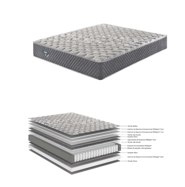 Além disso, o conjunto inclui uma base robusta e durável, garantindo estabilidade e segurança durante o uso. Sua estrutura sólida proporciona uma base sólida para o colchão, promovendo uma sensação de segurança e conforto durante o sono.