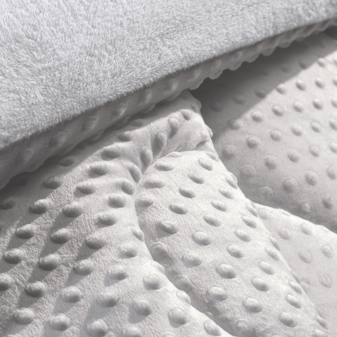 - Toque Extra Macio e Sensação Sensorial: o lado superior em Micromink Puff Ball proporciona uma textura de bolinhas suaves e refinadas, elevando a sensação de aconchego.