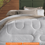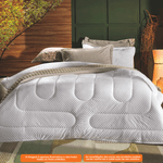- Isolamento Térmico Eficiente: com enchimento de poliéster thermobonder 180g/m², o edredom mantém o calor corporal por mais tempo.