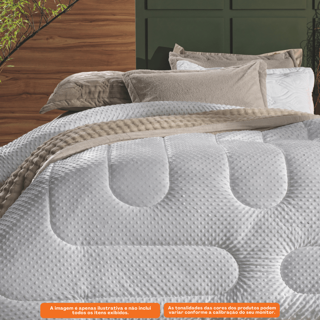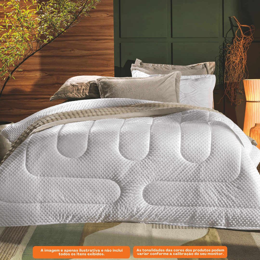 - Design Sofisticado: com visual elegante e cartela de cores versátil, o edredom se adapta com facilidade a diversos estilos de quarto.