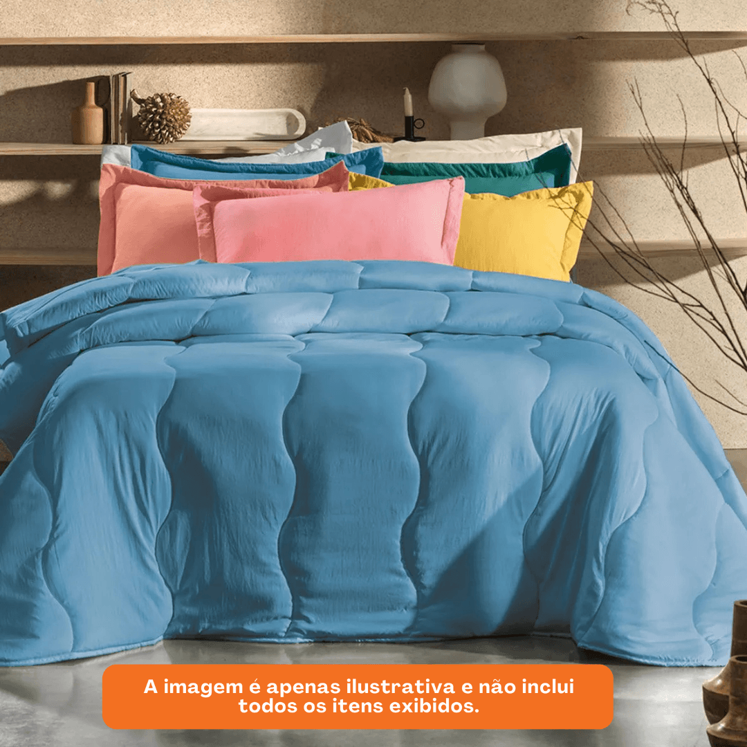 - Conforto em Todas as Estações: O edredom é ideal para qualquer época do ano, oferecendo um equilíbrio perfeito entre leveza e calor para garantir noites de sono agradáveis durante todo o ano.