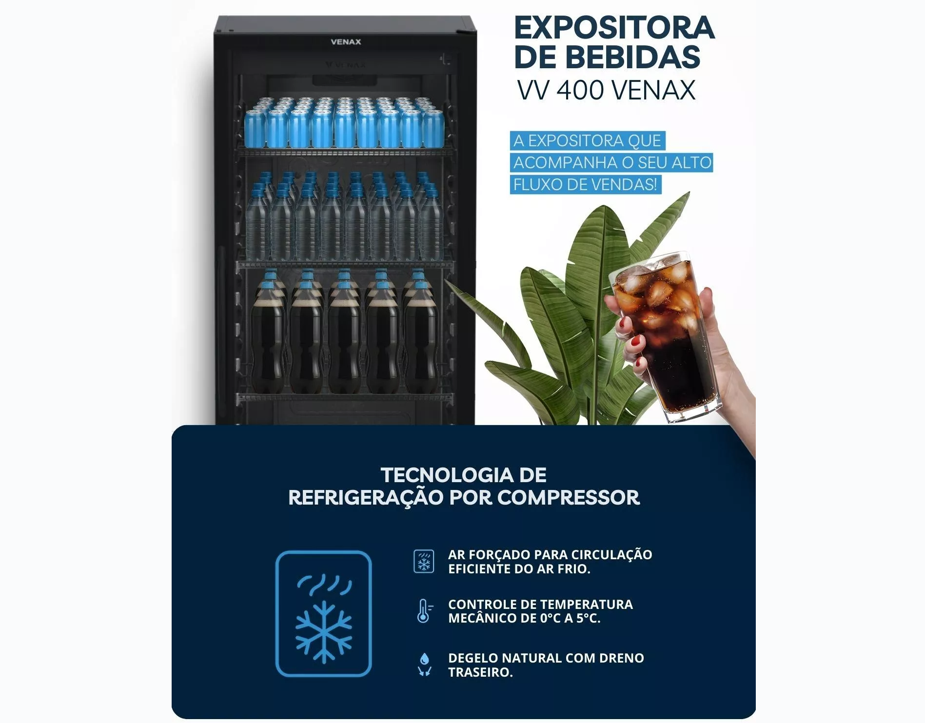 A Expositora de Bebidas Venax VV400 é a solução ideal para estabelecimentos que buscam eficiência, organização e apresentação impecável de suas bebidas. Com capacidade de 400?L, ela oferece excelente desempenho térmico e design moderno, atendendo às necessidades de bares, restaurantes, mercados e outros comércios que exigem alta performance.