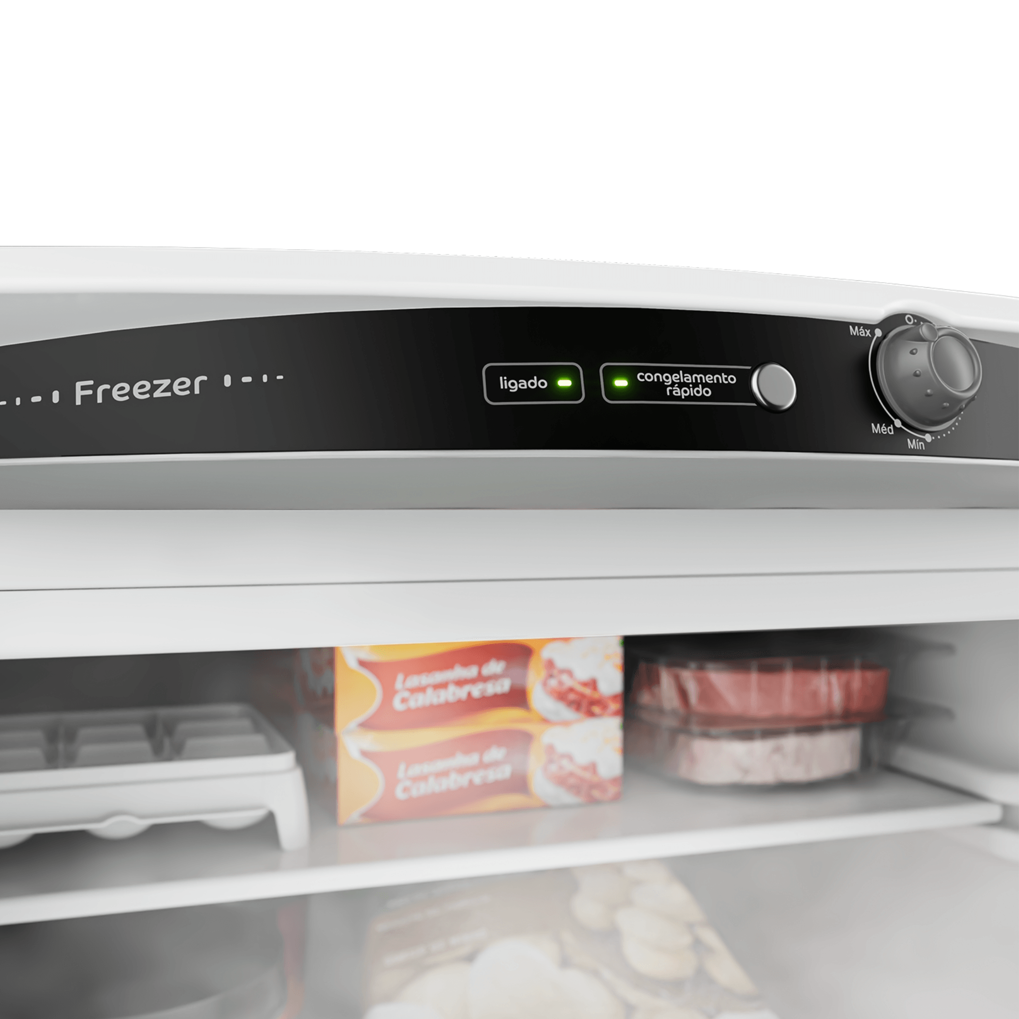 Controle de Temperatura Externo - Você pode regular a temperatura sem precisar abrir a porta do seu Freezer Consul. Desta forma, você economiza energia e preserva seus alimentos por mais tempo. Muito bom, né?