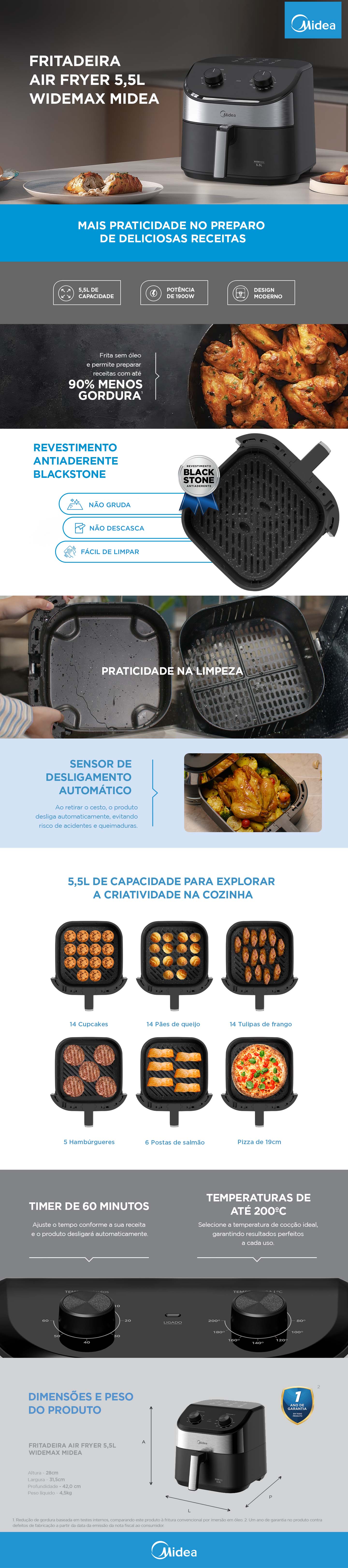 Garanta agora a sua Fritadeira Elétrica Sem Óleo Midea Widemax 5,5 L com oferta especial!