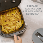 - Potência de 1.900 W e temperatura ajustável até 200 °C, para preparo rápido e eficiente.