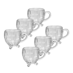 O jogo inclui 6 xícaras, tornando-o ideal para atender pequenas reuniões ou para uso diário, com a garantia de durabilidade e resistência. Além disso, o material cristal é fácil de limpar e mantém sua aparência brilhante por mais tempo, mesmo após várias lavagens.