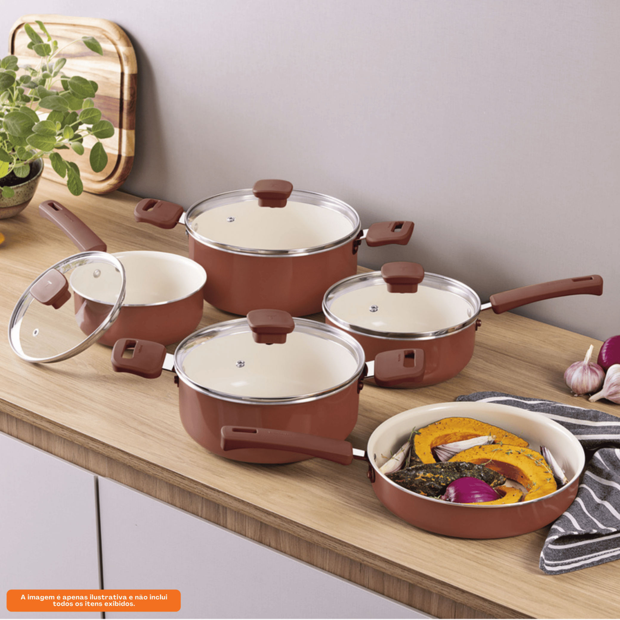 As peças contam com revestimento interno em cerâmica, que permite preparar receitas com pouquíssimo óleo, e revestimento externo siliconado, conferindo um acabamento impecável e fácil de limpar.