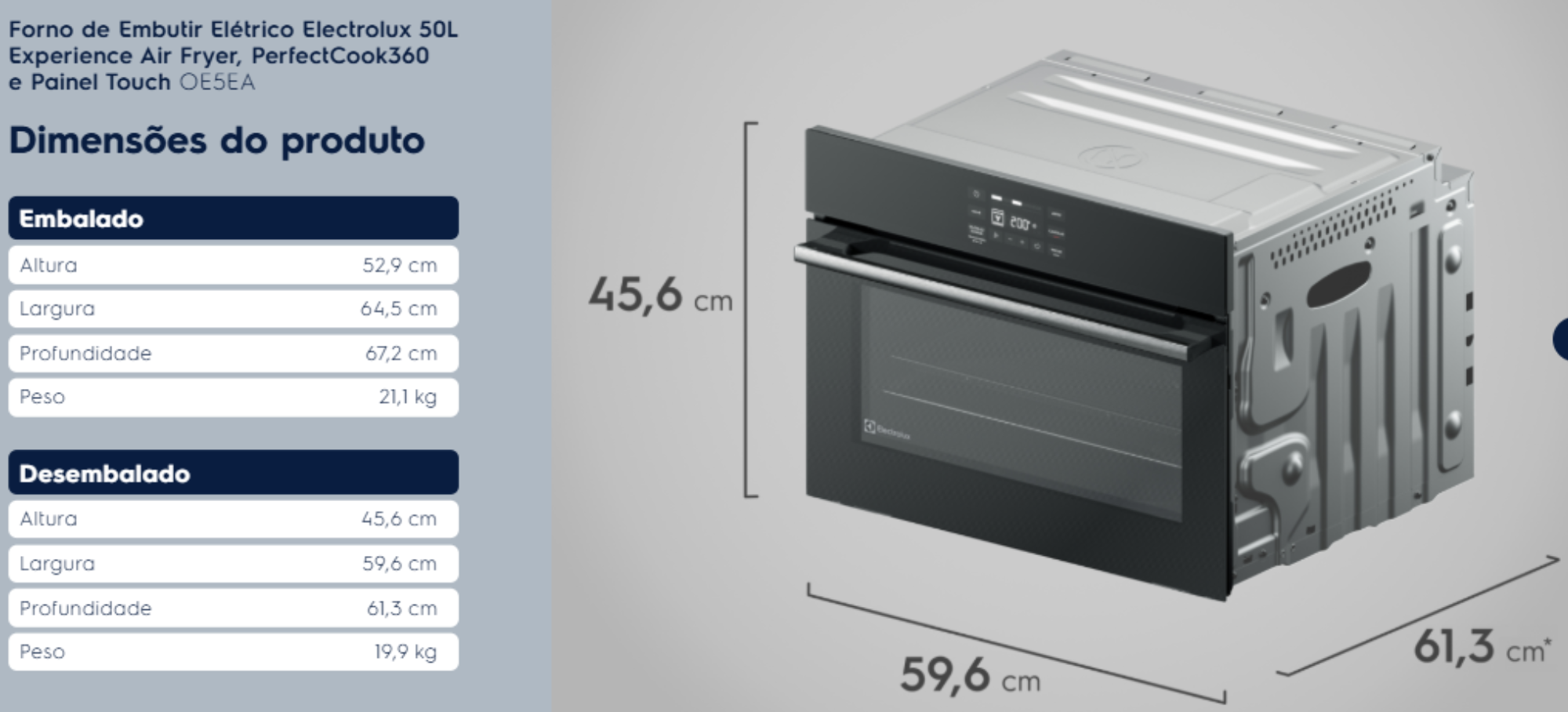 Forno de Embutir Elétrico Electrolux 50L OE5EA Experience com Função Air Fryer