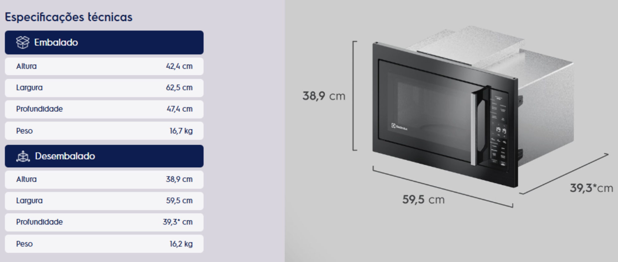 Micro-ondas de Embutir Electrolux 34L Experience Descongelamento Assistido