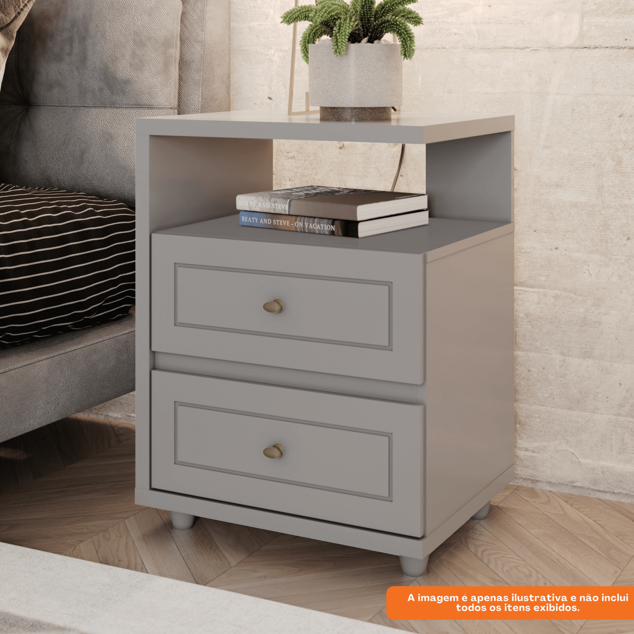 Mesa de Cabeceira Americana Henn 2 Gavetas Cinza