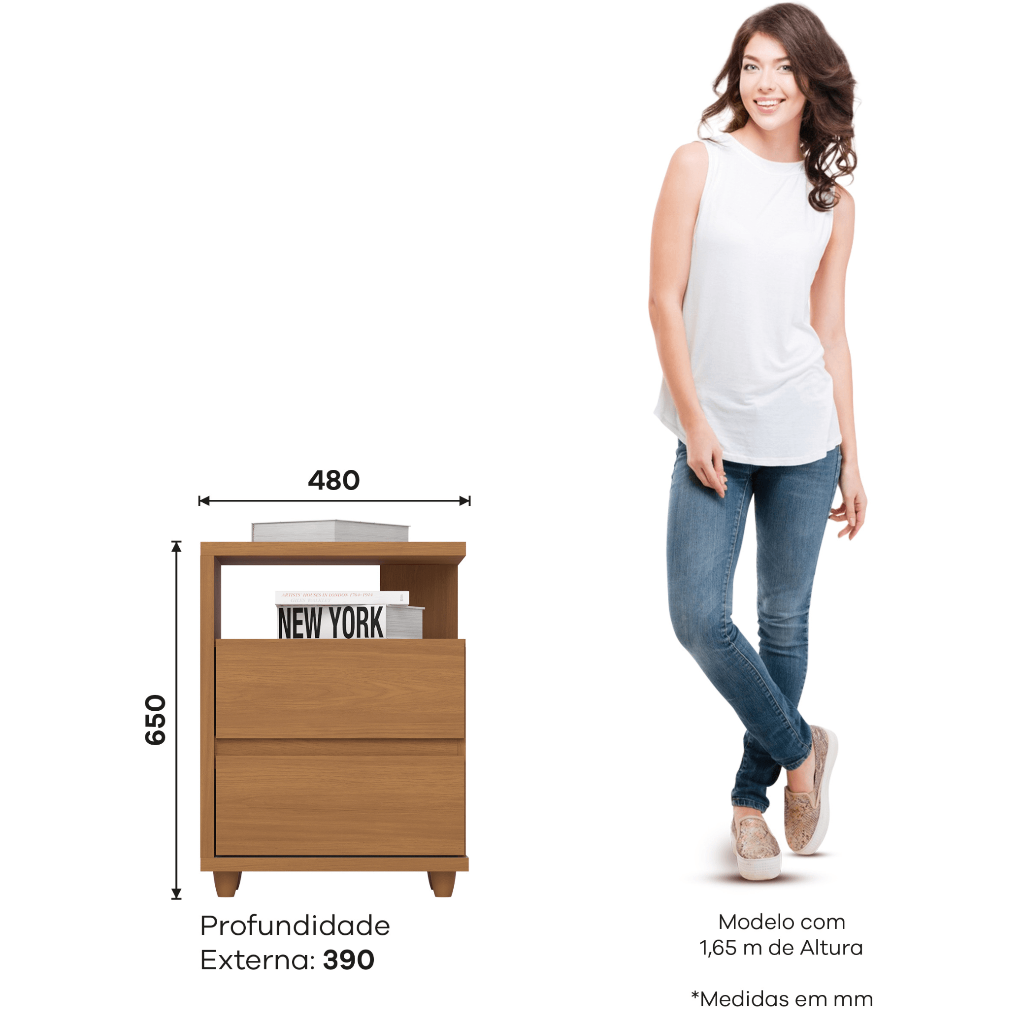 - Espaço Inteligente: 02 gavetas espaçosas para organizar livros, dispositivos eletrônicos e objetos pessoais.
