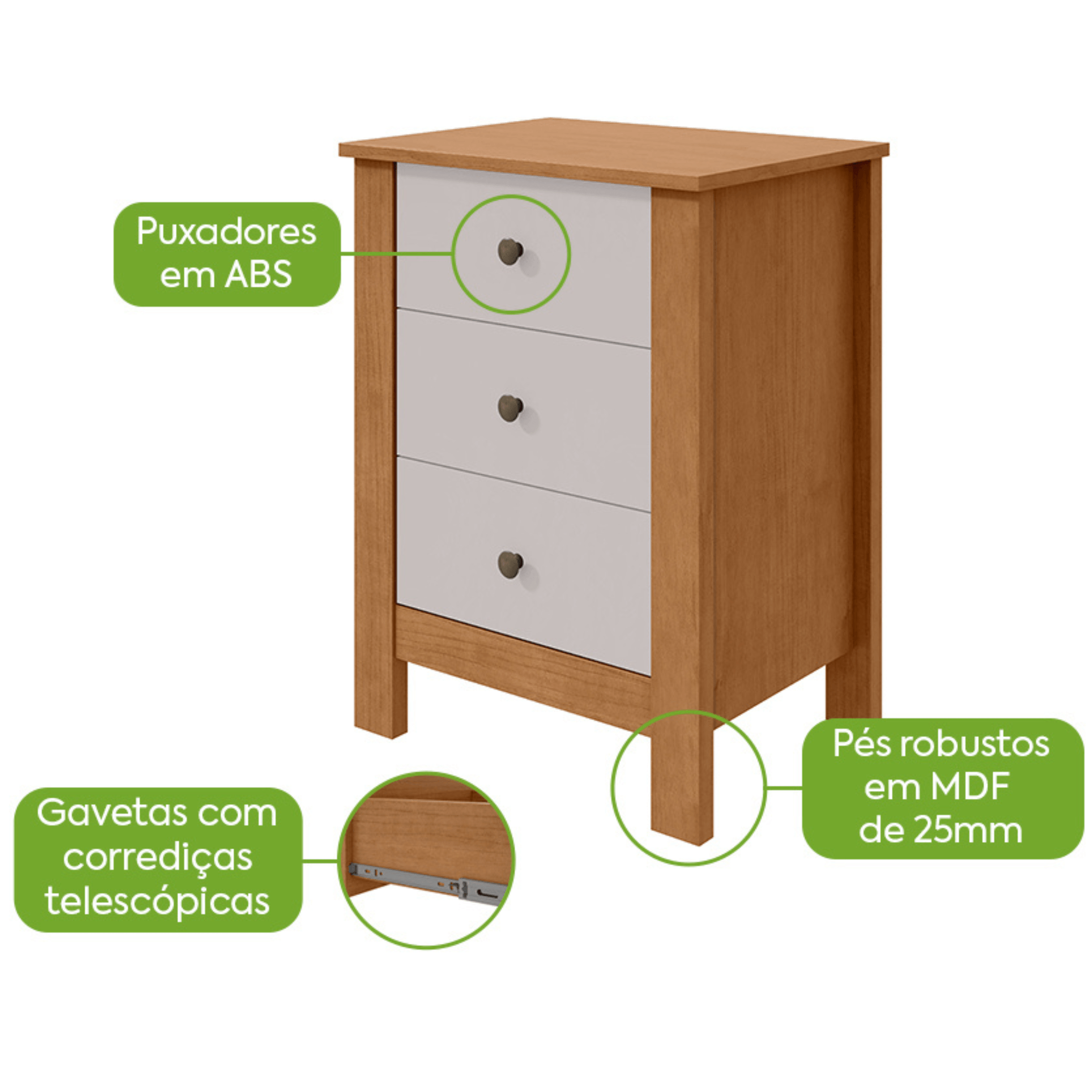 - Puxadores em metal;