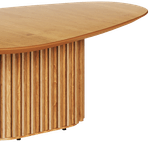 A Mesa de Centro Orgânica Imcal apresenta um tampo em MDF, oferecendo um visual sofisticado e resistente. A base é revestida com lâmina de cinamomo e inclui ripas de madeira maciça, garantindo durabilidade e um design elegante. A mesa tem duas bases: uma maior com formato oval e uma menor com formato redondo, proporcionando versatilidade e estilo ao ambiente.