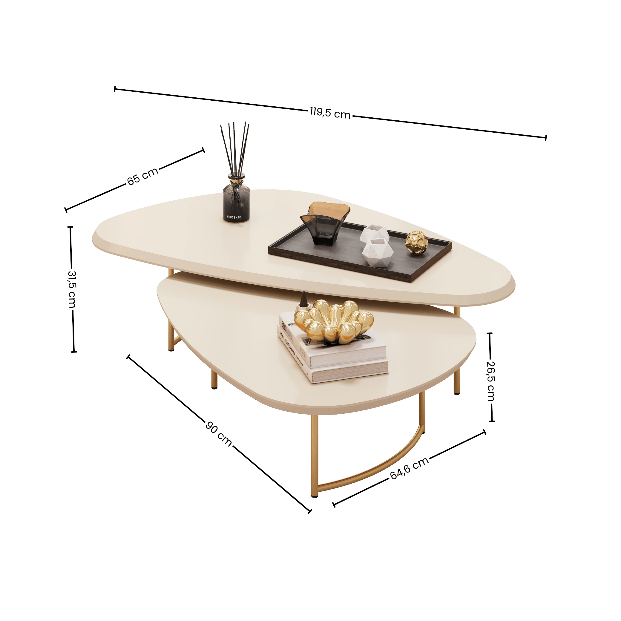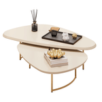 Uma escolha encantadora para compor sua sala de estar, a Mesa de Centro Pétala é um conjunto versátil com duas mesas que se complementam em perfeita harmonia. Seu design orgânico traz leveza e movimento ao ambiente, inspirado nas formas naturais que remetem à suavidade das pétalas. Os tampos possuem acabamento sofisticado, combinando tons modernos que se adaptam facilmente a diferentes estilos de decoração. A estrutura é sustentada por pés metálicos curvos na cor dourada, que conferem elegância e durabilidade, além de seguirem as últimas tendências do mobiliário contemporâneo. Com a Mesa Pétala, seu espaço ganha um toque de sofisticação, praticidade e aconchego em um único conjunto.
