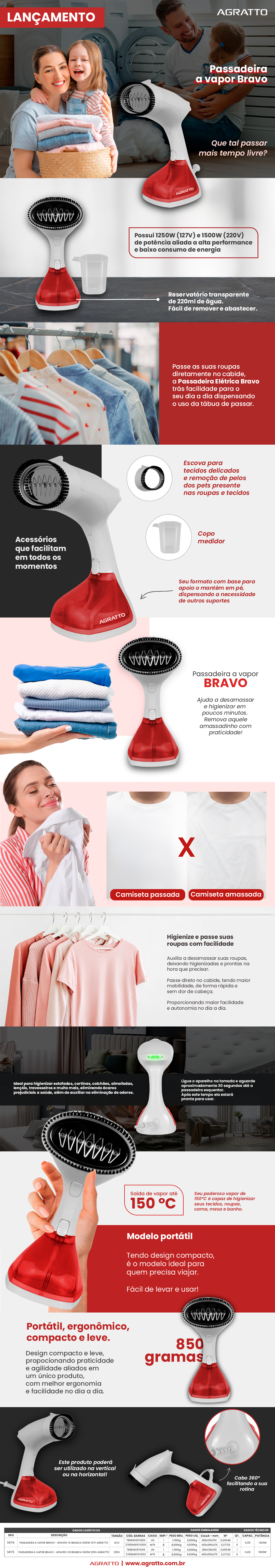 Passadeira Portátil Bravo Agratto a Vapor 1500W