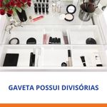 A presença de uma gaveta espaçosa na Penteadeira Camarim da Dalla Costa é um benefício inestimável para quem deseja manter sua área de beleza organizada. Você pode armazenar seus produtos de maquiagem, pincéis, joias e outros acessórios essenciais de forma prática e acessível. A gaveta desliza suavemente graças ao seu sistema de trilhos de alta qualidade, tornando o acesso aos seus itens ainda mais conveniente.