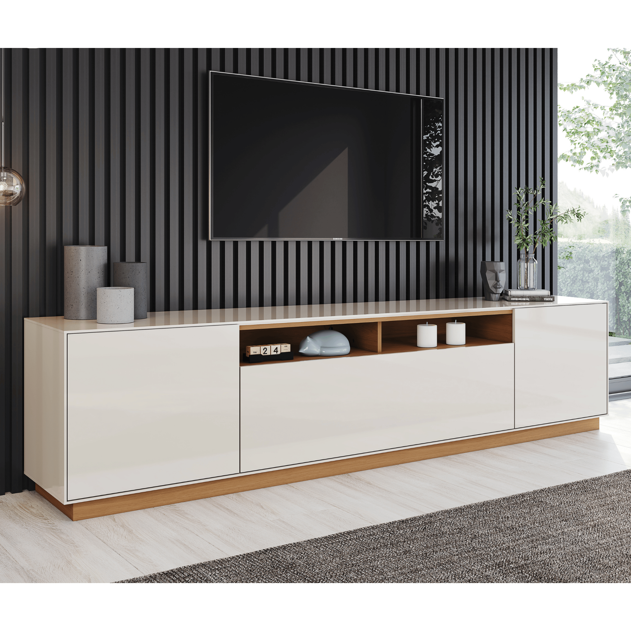 - Espaço Generoso: Seus 2200mm de largura oferecem uma superfície ampla para decoração e equipamentos de som e vídeo.