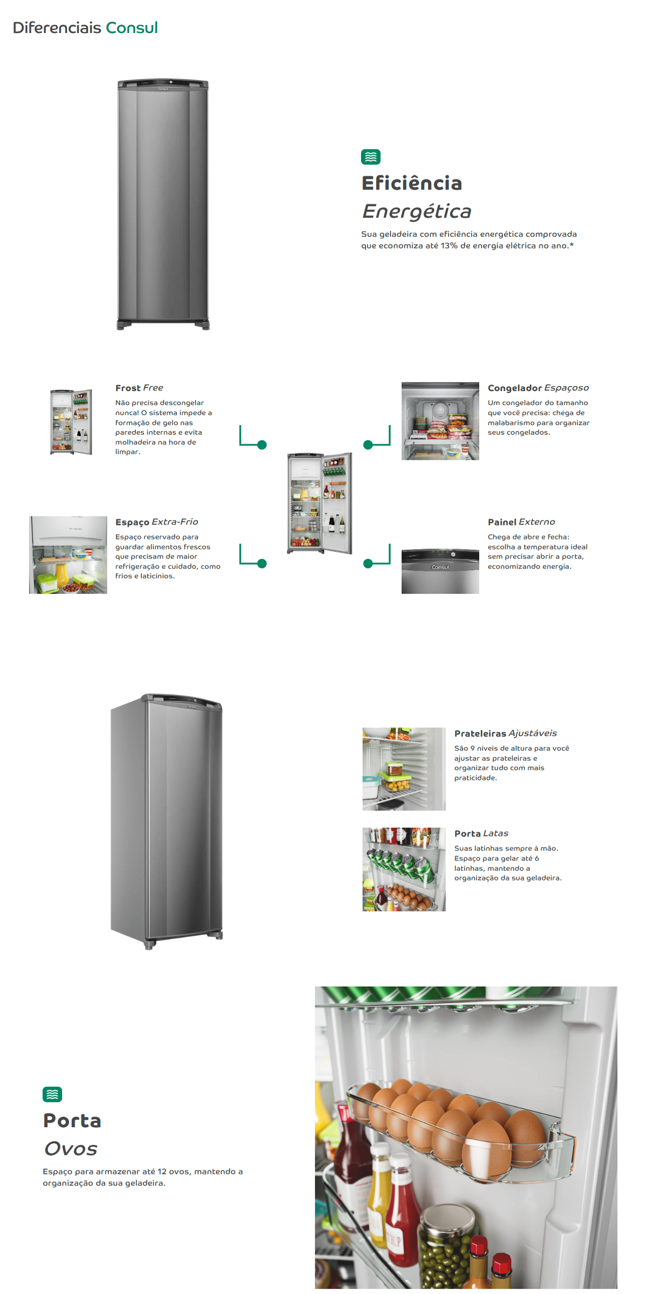 O destaque fica para o Compartimento Extra Frio, perfeito para conservar melhor frios, laticínios e bebidas, garantindo alimentos sempre na temperatura ideal.