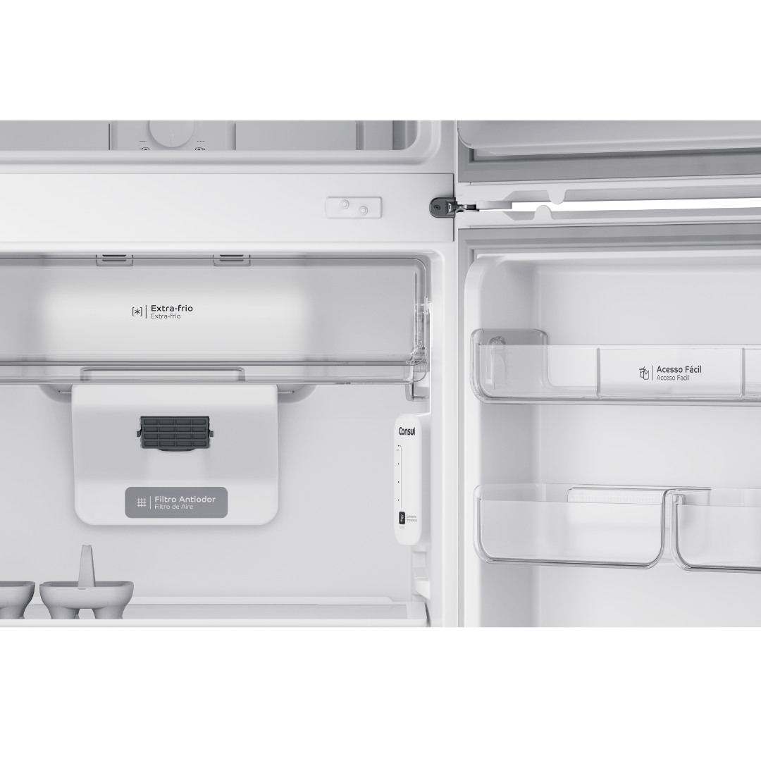 - Freezer Espaçoso: Um freezer bem pensado do tamanho que você precisa. É o fim do malabarismo na hora de organizar seus congelados.