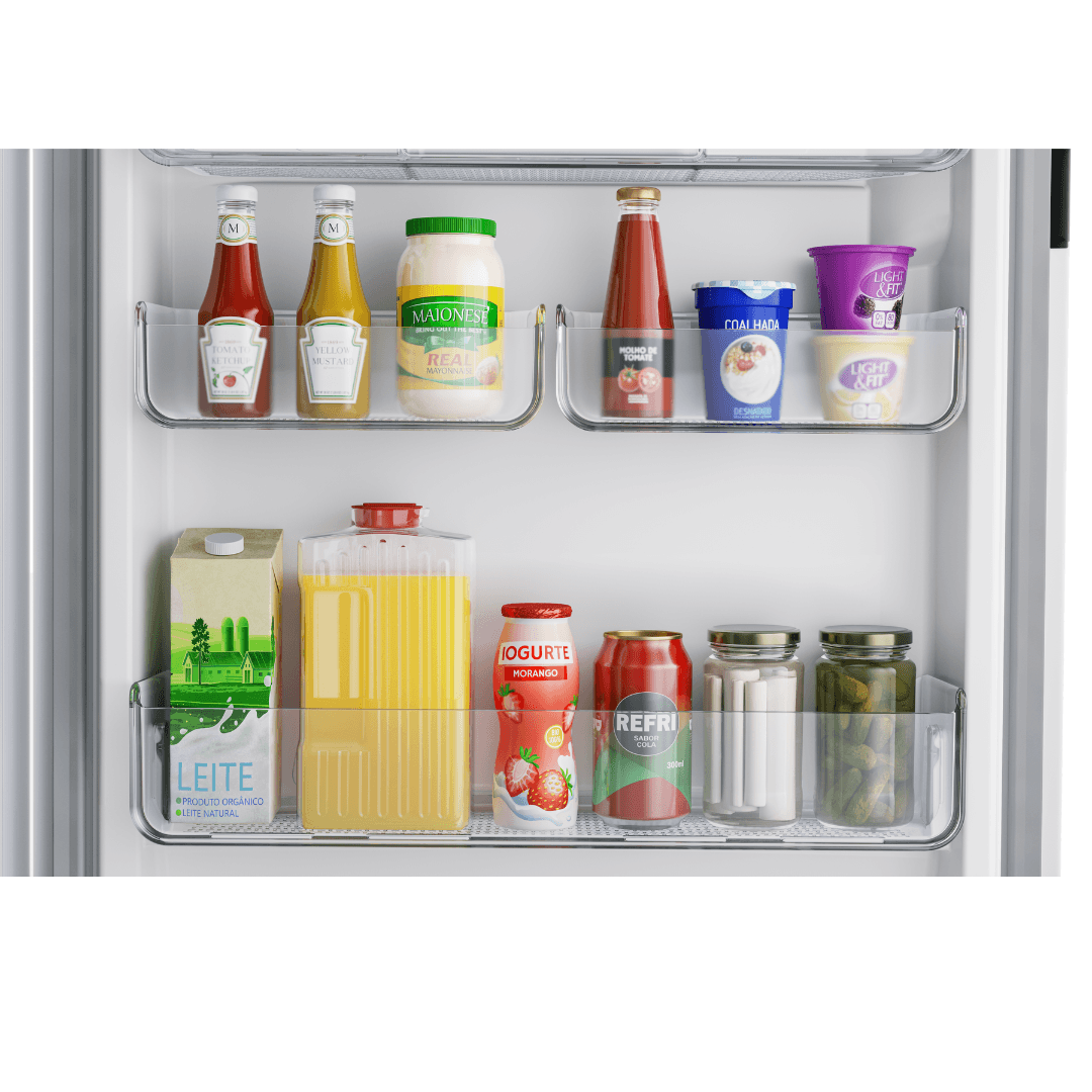 - Compartimentos Removíveis: Precisa guardar algo maior na porta da geladeira? Tudo bem! Os compartimentos são removíveis facilitando acomodar tudo que você deseja.