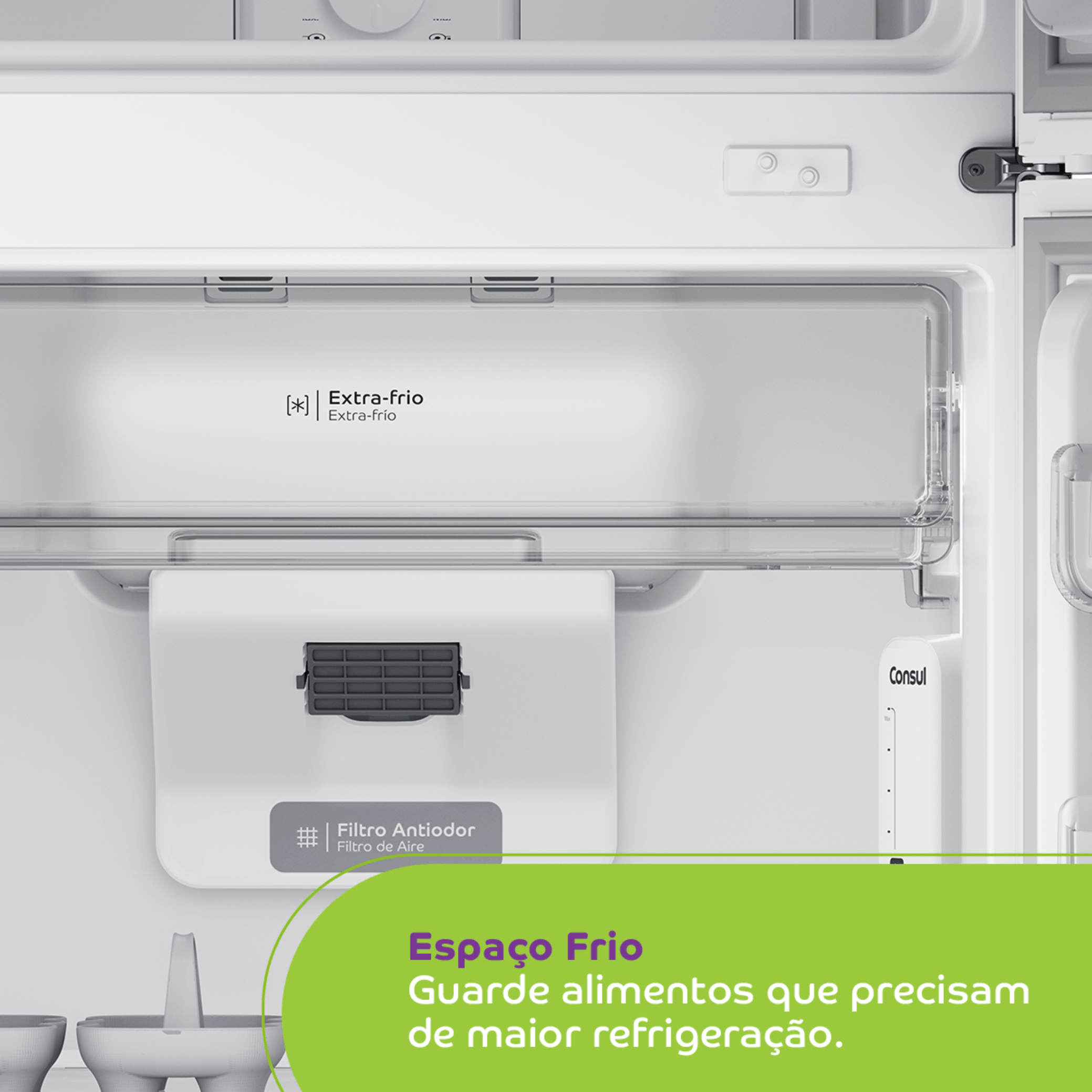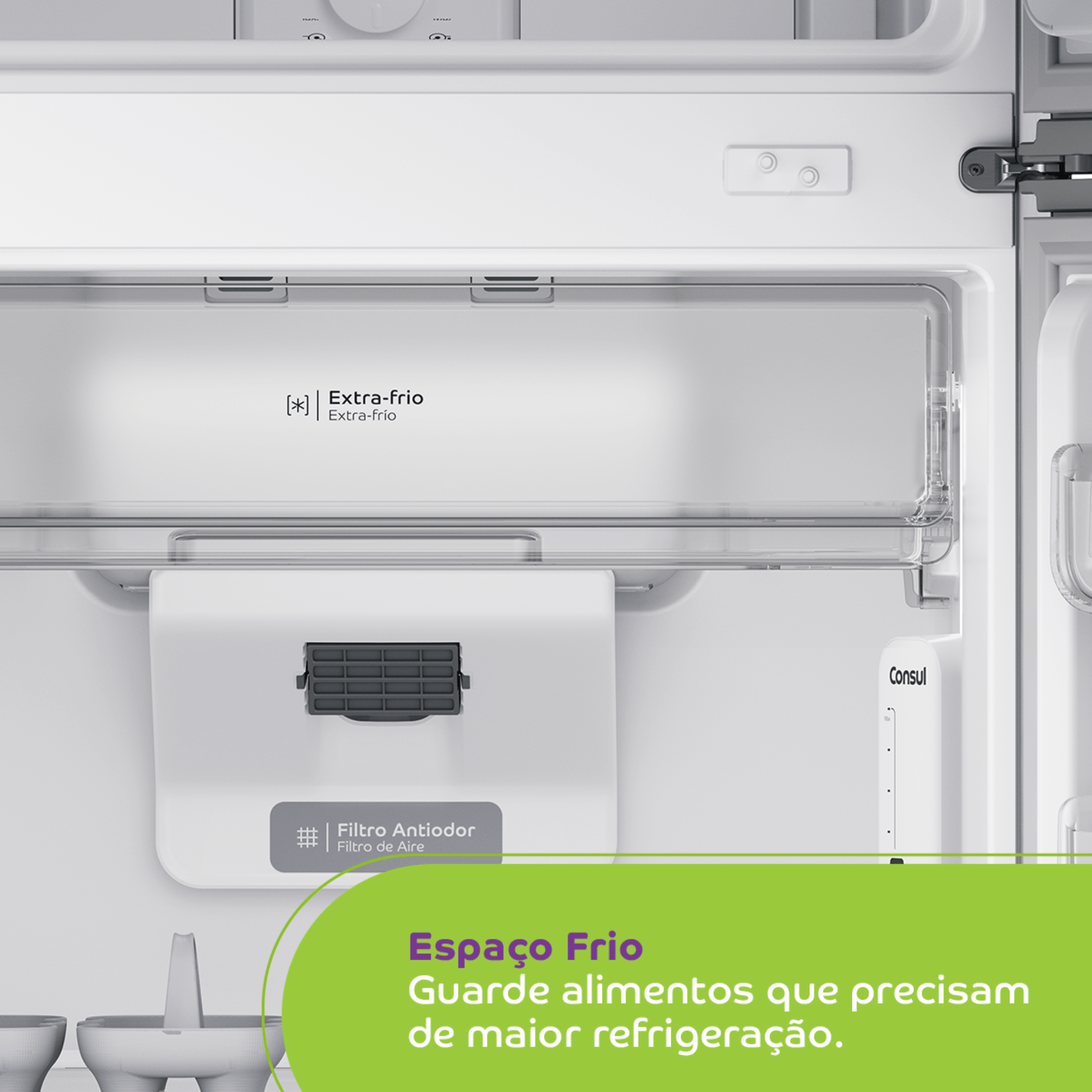 - Espaço Frio: Uma geladeira tão bem pensada que tem um espaço reservado para guardar alimentos frescos que precisam de maior refrigeração e cuidado.