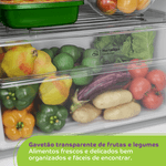 - Gavetão Transparente de Frutas e Legumes: É bom contar com um espaço pensado especialmente para frutas e legumes. E melhor ainda, poder deixar os alimentos bem organizados e ver tudo que tem lá dentro num piscar de olhos.