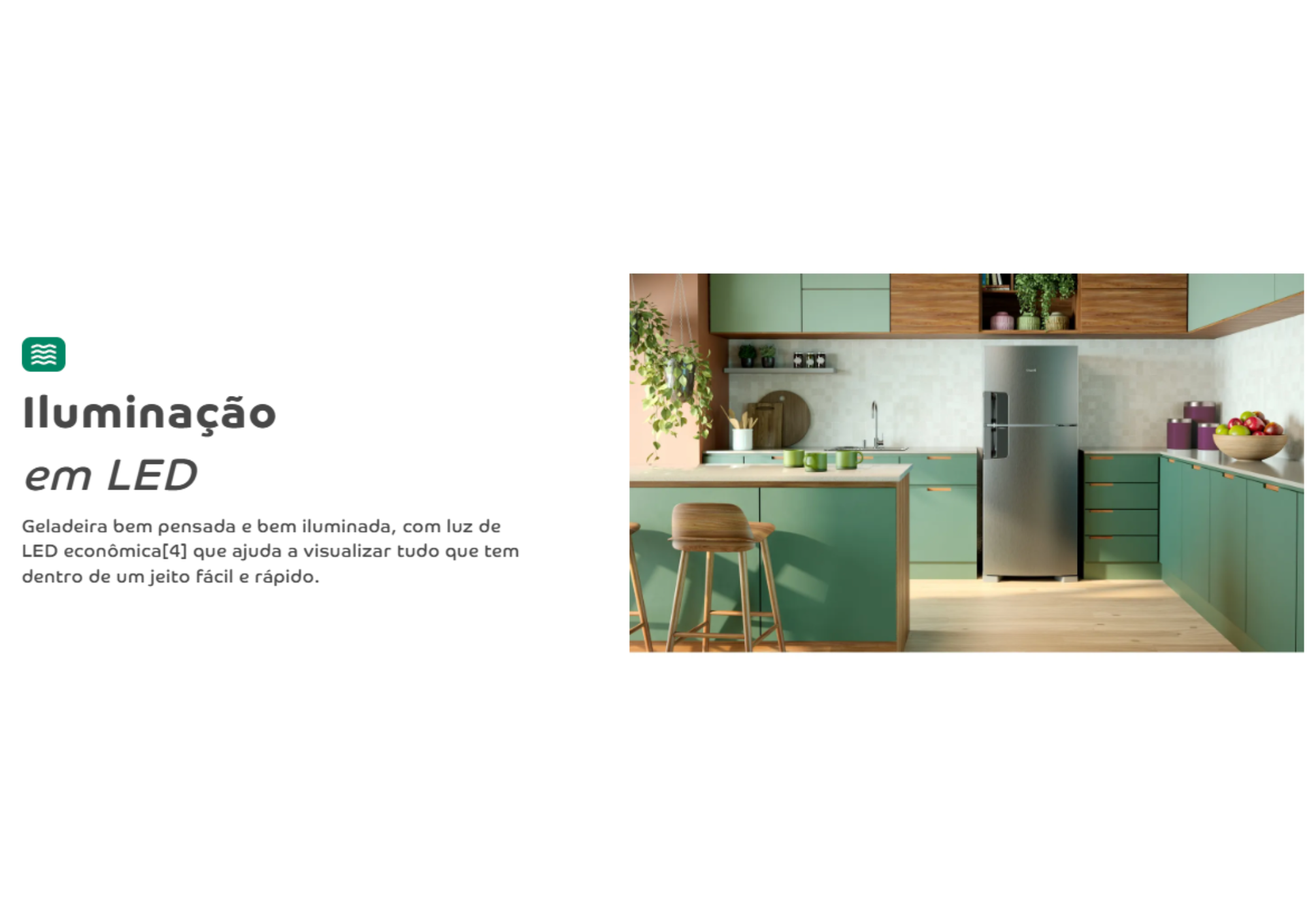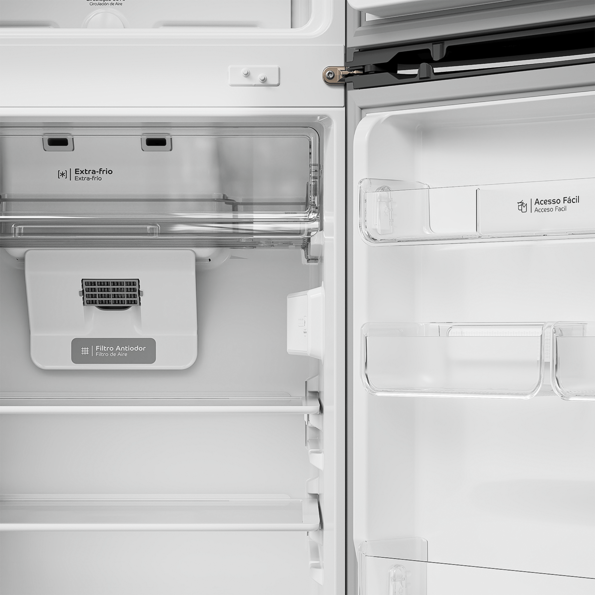 Seu Filtro Antiodor ajuda a reduzir cheiros indesejados, mantendo o interior sempre agradável, enquanto o sistema Frost Free elimina a necessidade de descongelamento manual, trazendo mais praticidade no dia a dia.