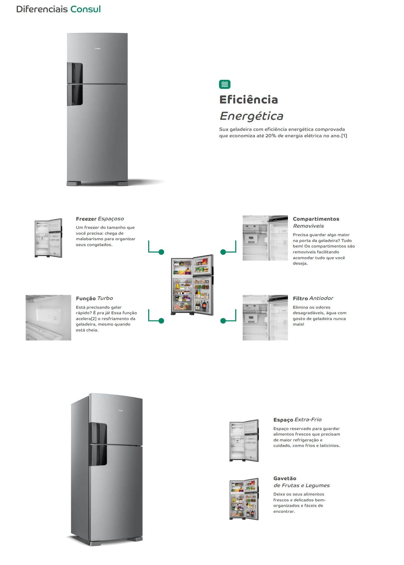- Filtro Antiodor: reduz odores e preserva os alimentos