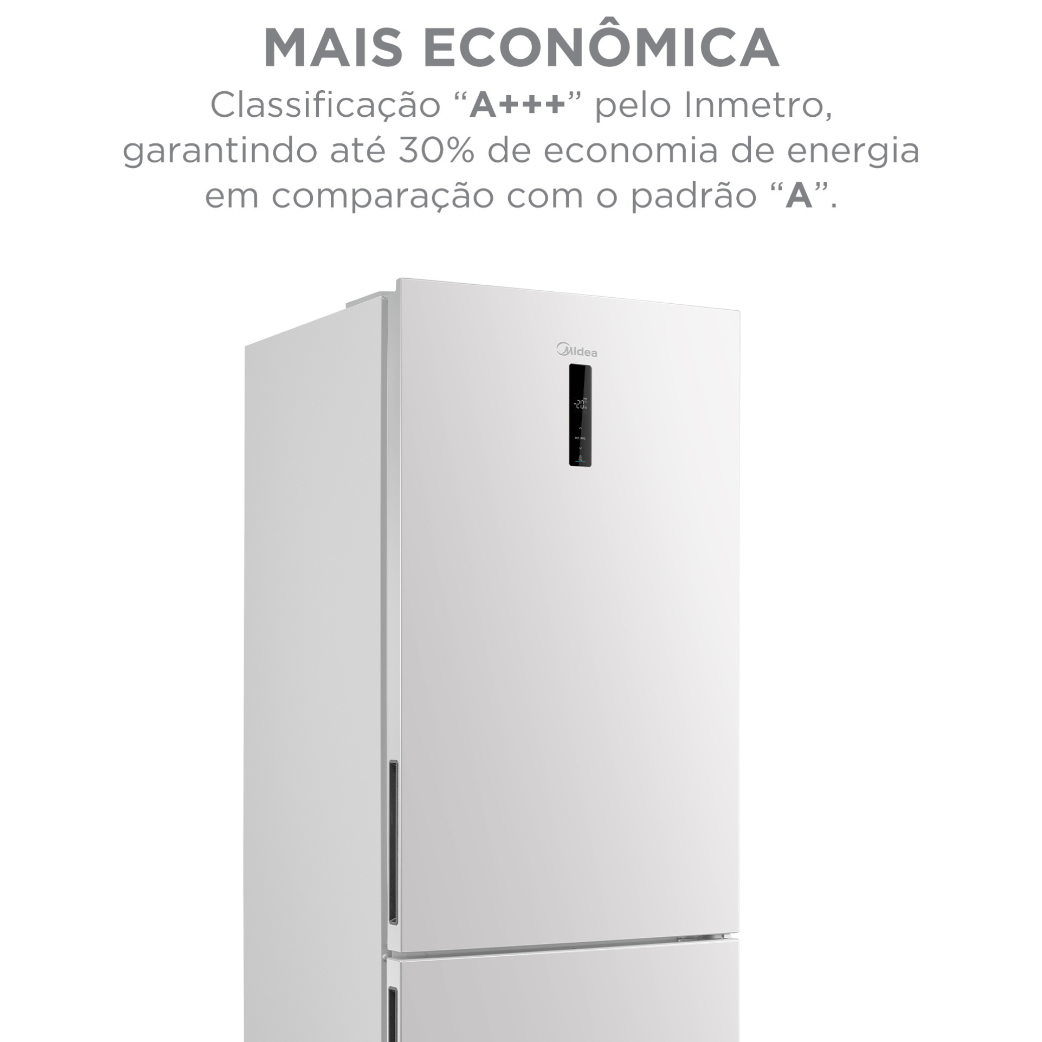 - Classificação A+++ de energia: até 30% mais econômica comparado às geladeiras padrão A.