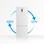 A Geladeira Frost Free Inverse 416L Midea Inverter Inox combina estilo, tecnologia e praticidade. Seu design moderno com refrigerador na parte superior oferece mais facilidade no dia a dia, deixando os alimentos mais acessíveis e organizados. A poderosa Tecnologia Inverter garante resfriamento rápido, menor variação de temperatura, baixo ruído e até 30% de economia de energia, graças à classificação A+++ do Inmetro, muito superior aos padrões convencionais. Além disso, conta com a função Flexi-Volt, funcionando tanto em 127V quanto 220V, sem complicações na instalação.
