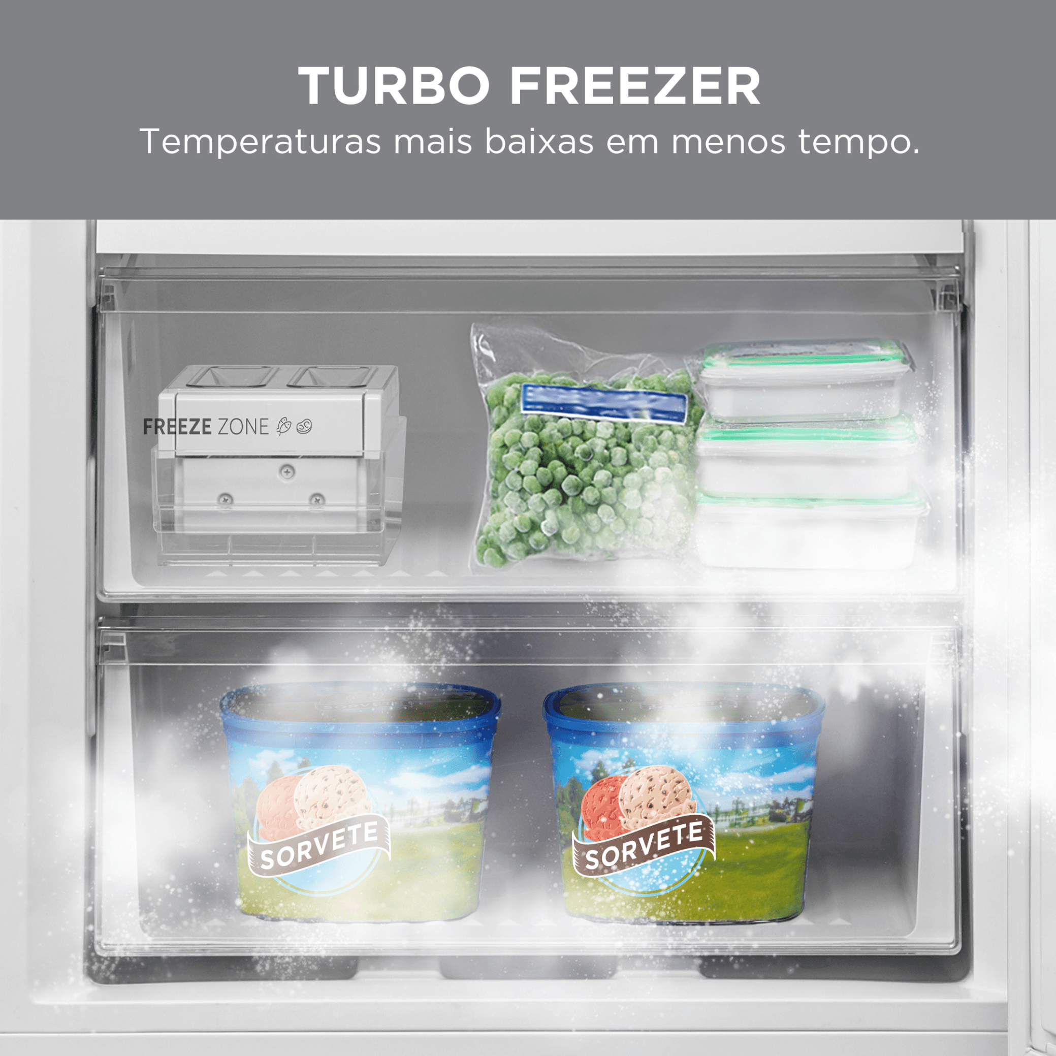 - Função Turbo Freezer: congela rapidamente sempre que você precisar.
