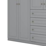 Este roupeiro não se contenta em ser apenas mais um móvel de armazenamento. Ele se destaca com suas 6 portas e 4 gavetas externas equipadas com corrediças telescópicas. Essa tecnologia permite uma abertura suave e ampla das gavetas, tornando o acesso às suas roupas e acessórios uma experiência prazerosa e sem esforço.