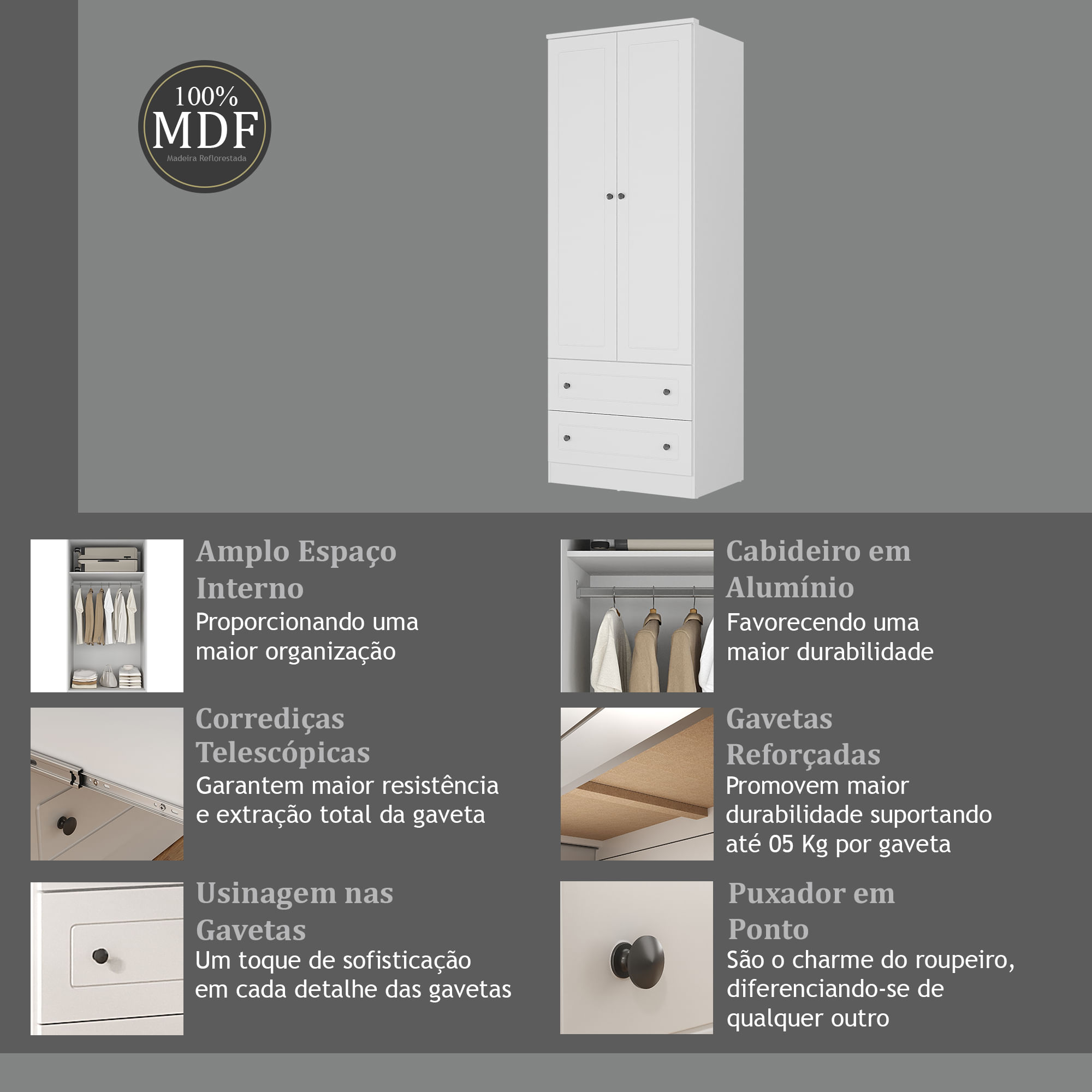 Roupeiro Fort Mambel 81cm 100% MDF 2 Portas 2 Gavetas