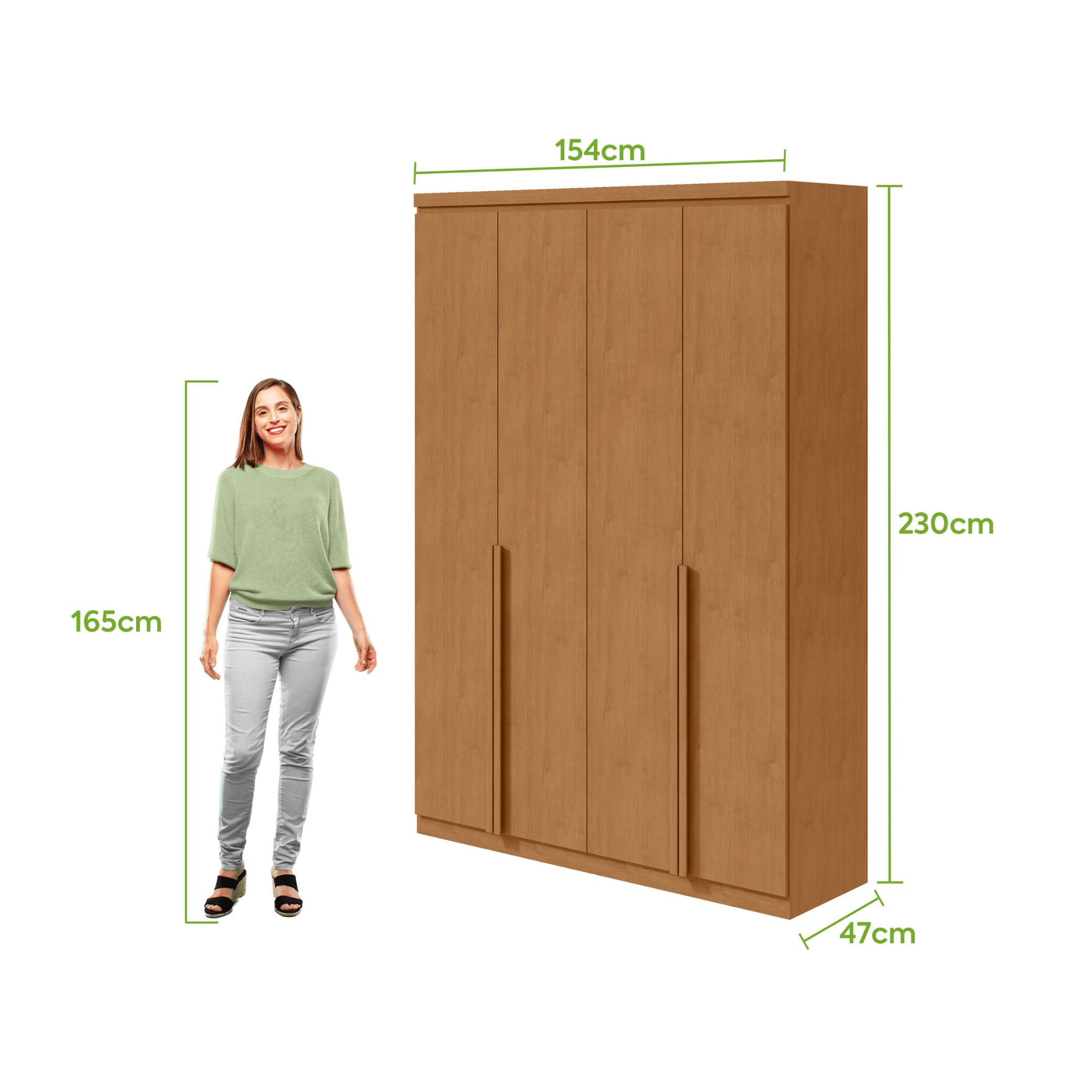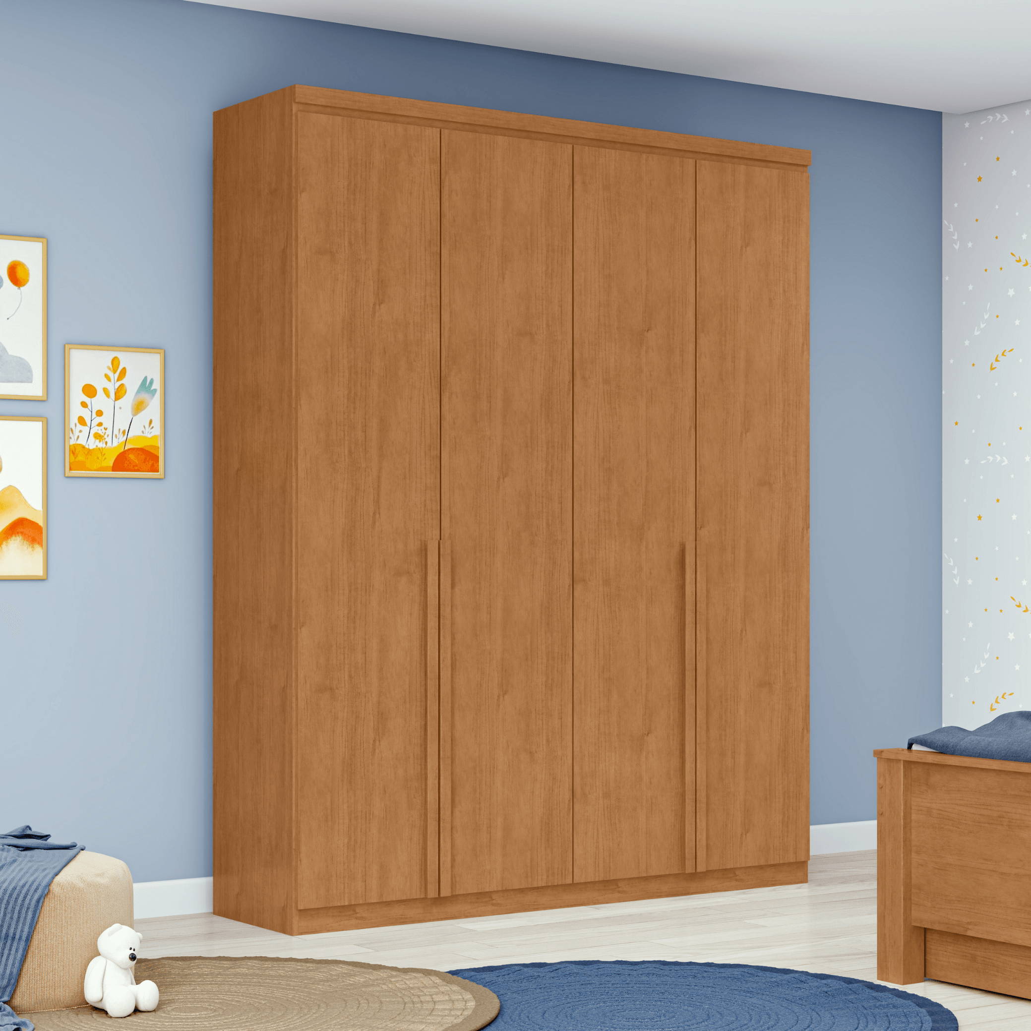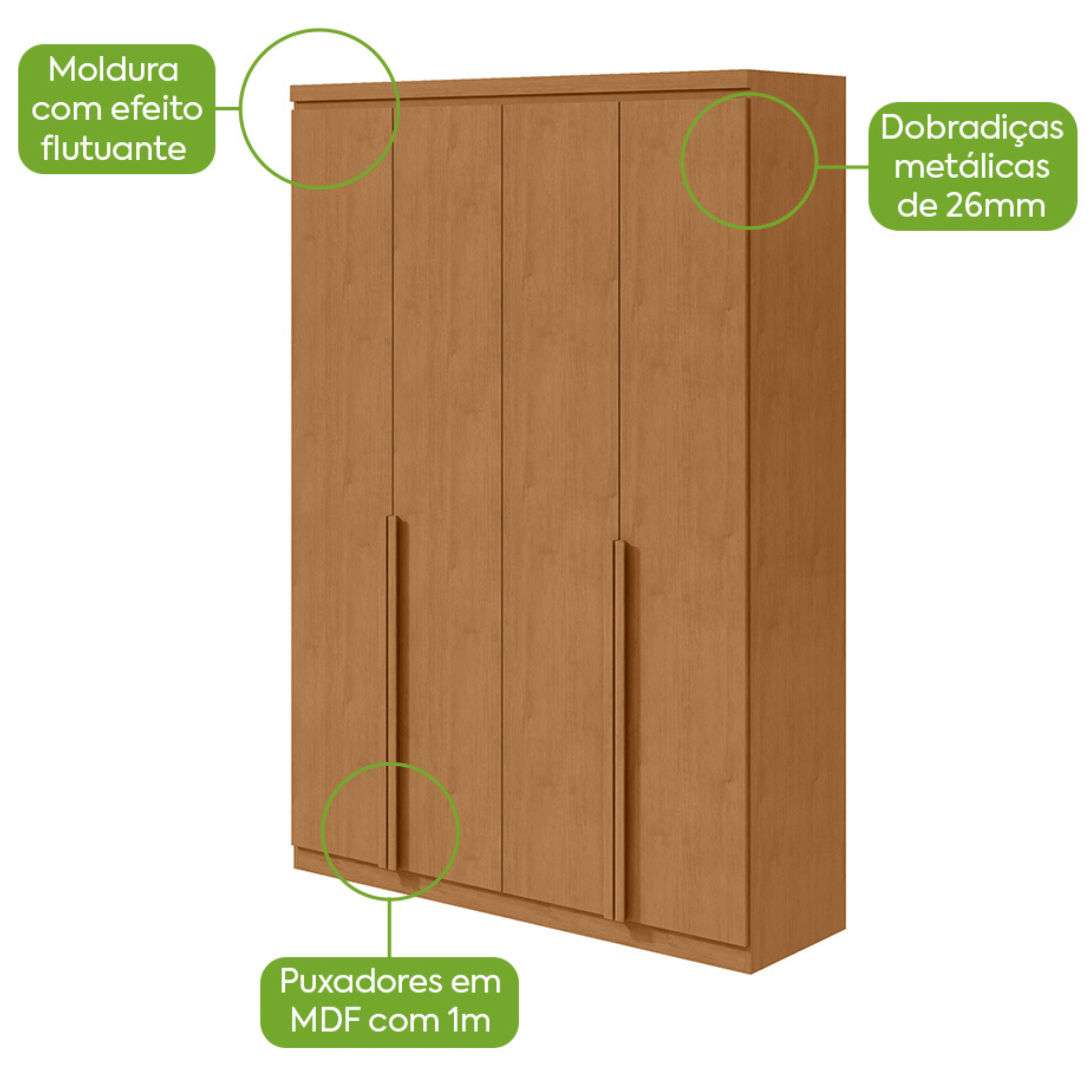 Roupeiro Alonzo Lopas 153cm 4 Portas com Puxador em Madeira