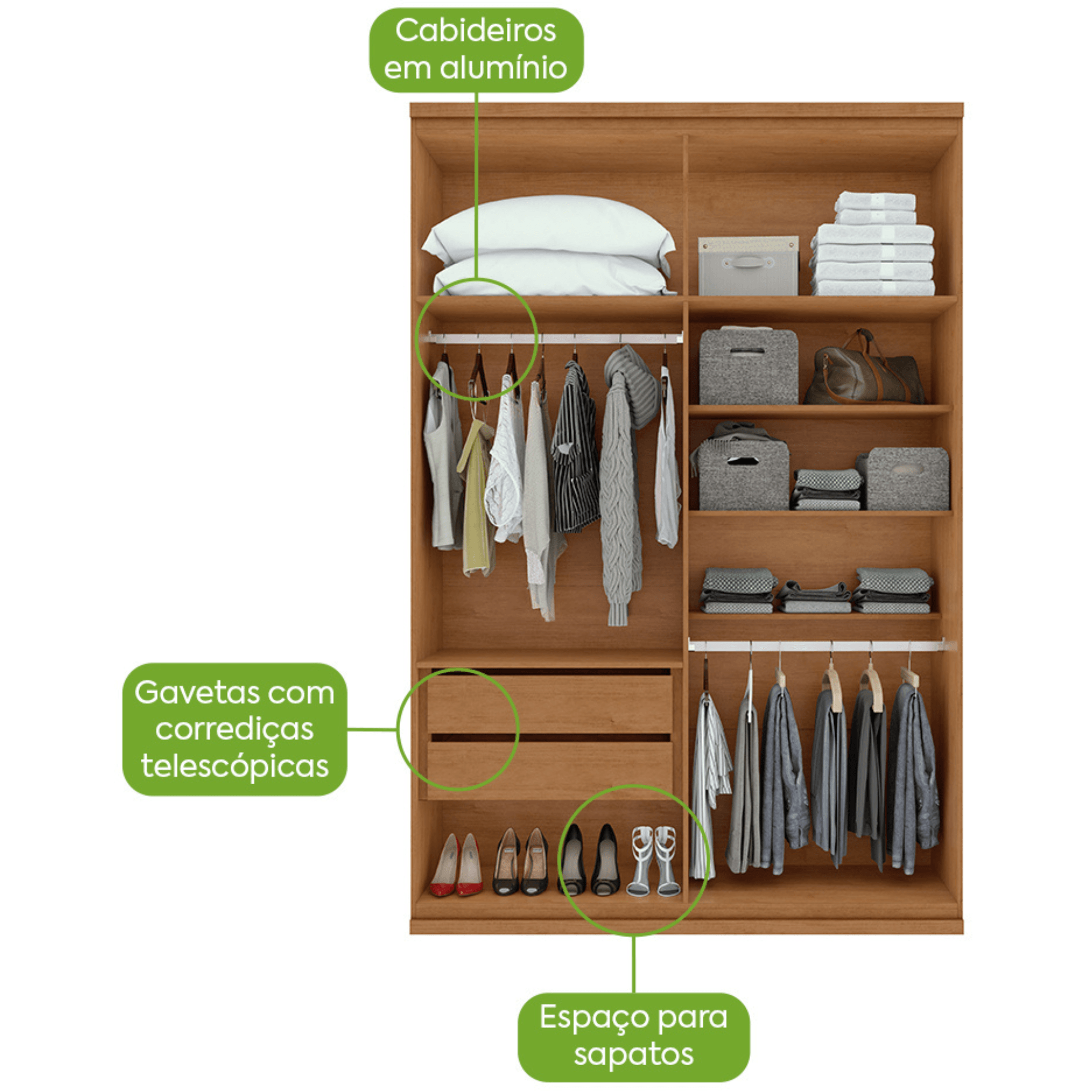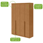 Chega de bagunça e desordem. Com o roupeiro New Alonzo com puxador em madeira, seu quarto ficará muito mais organizado e confortável.