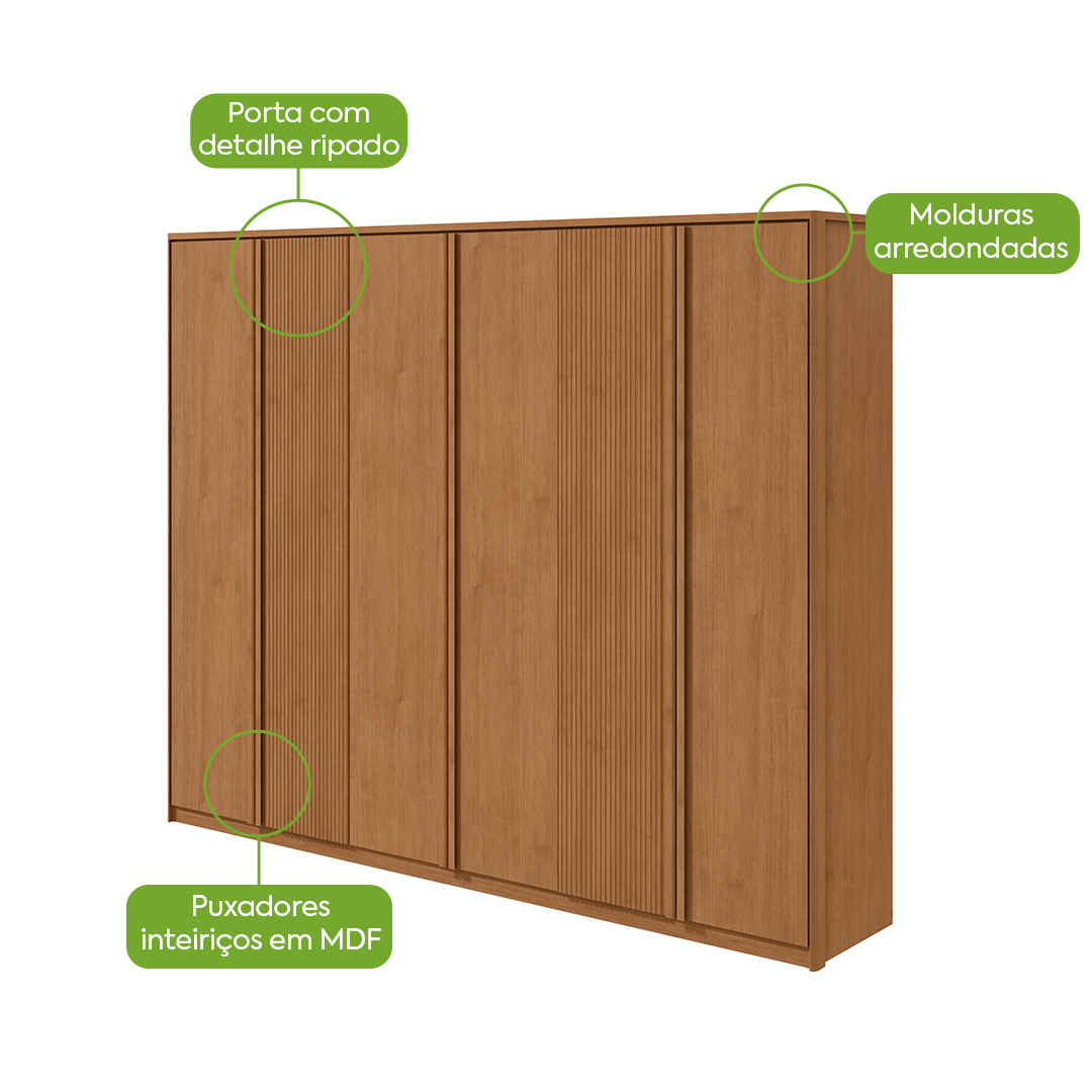 Com 6 portas de bater, o Ollie oferece abertura total e acesso facilitado ao interior, enquanto os espelhos aplicados em duas portas acrescentam elegância e praticidade, sendo ideais para conferir o look do dia sem ocupar espaço extra no ambiente.